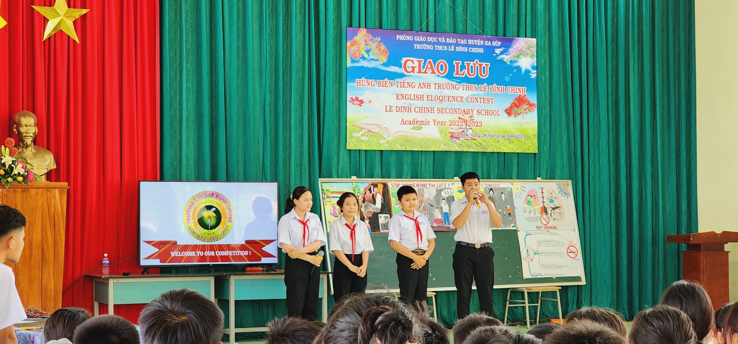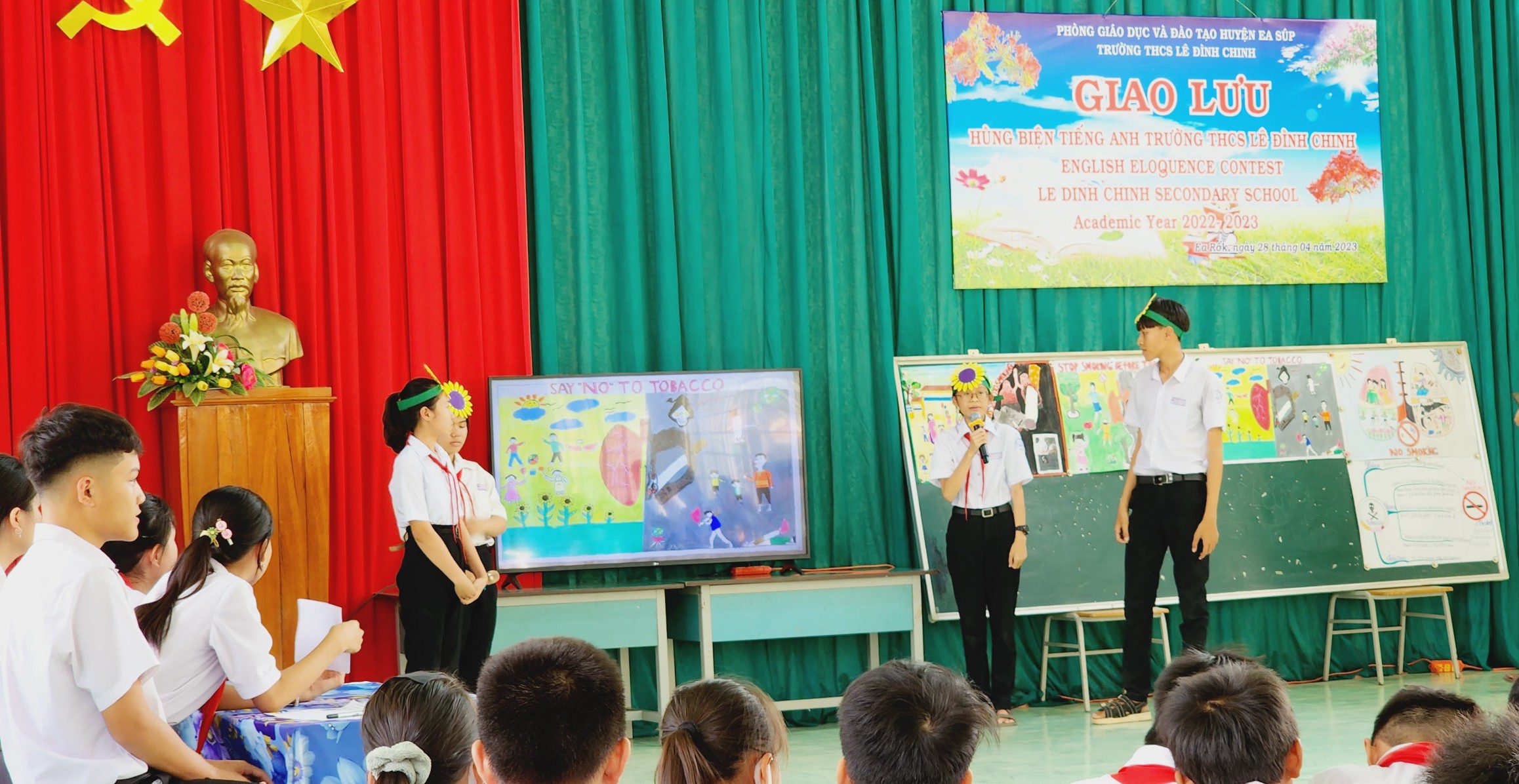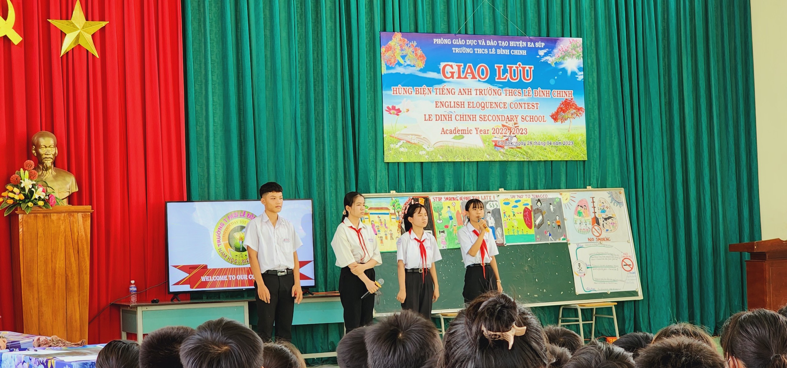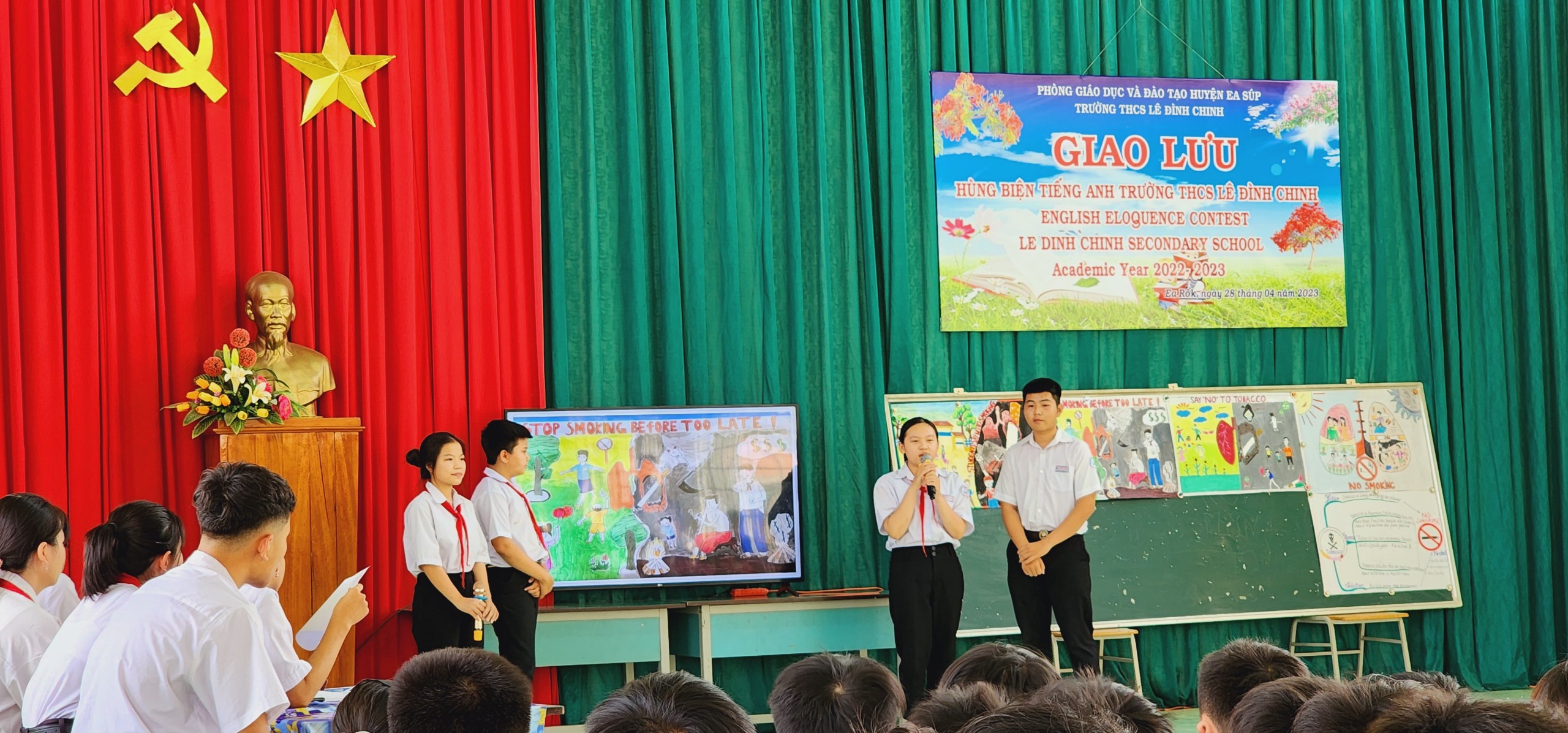 Trong không khí phấn khởi và vô cùng ý nghĩa đó, thực hiện kế hoạch nhiệm vụ năm học 2022 – 2023. Chiều ngày 28/4/2023, trường THCS Lê Đình Chinh long trọng tổ chức Cuộc thi giao lưu Hùng biện Tiếng Anh lần thứ 2 với chủ đề “Nói không với thuốc lá”, tạo sân chơi bổ ích cho các em học sinh hướng đến chào mừng các sự kiện lịch sử trọng đại của dân tộc.