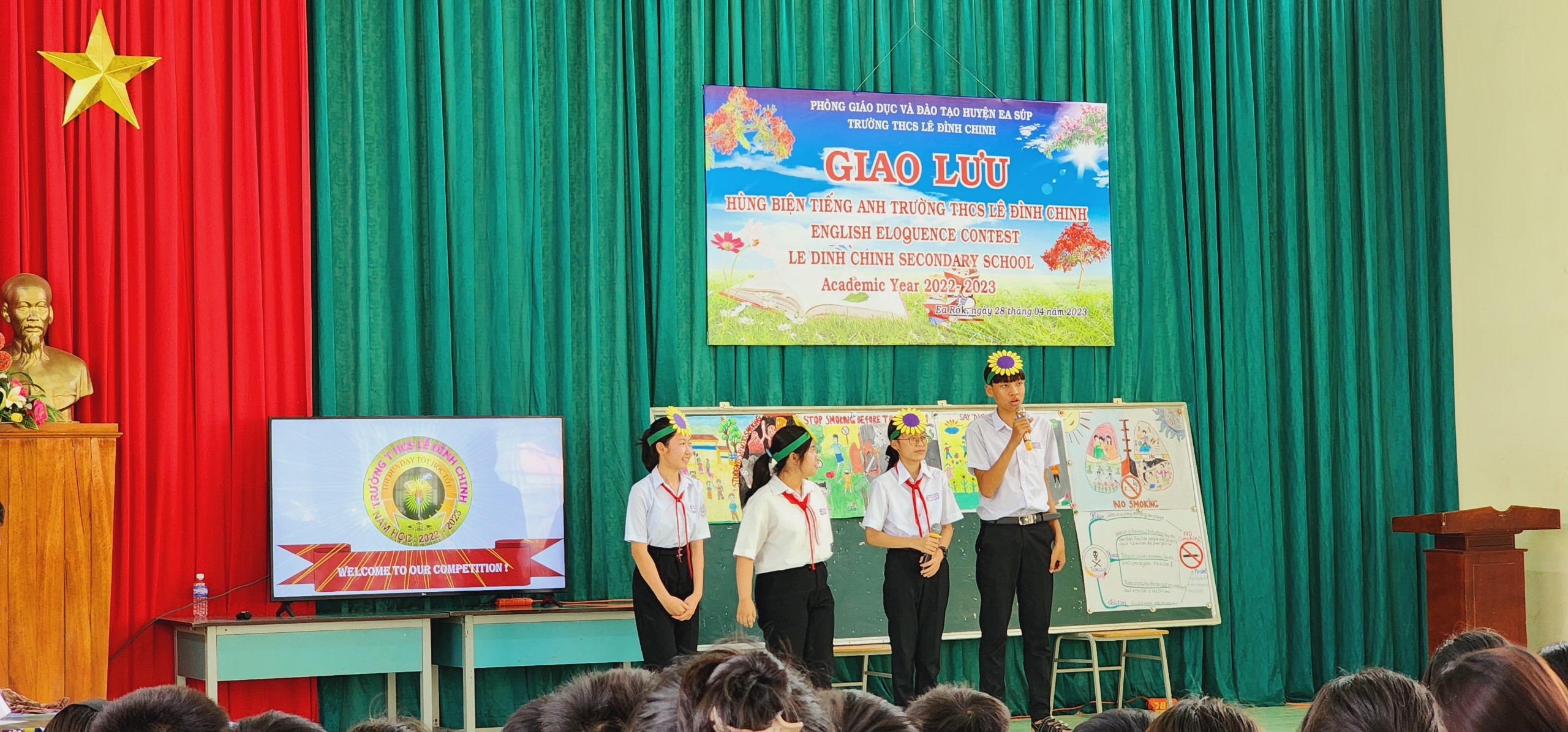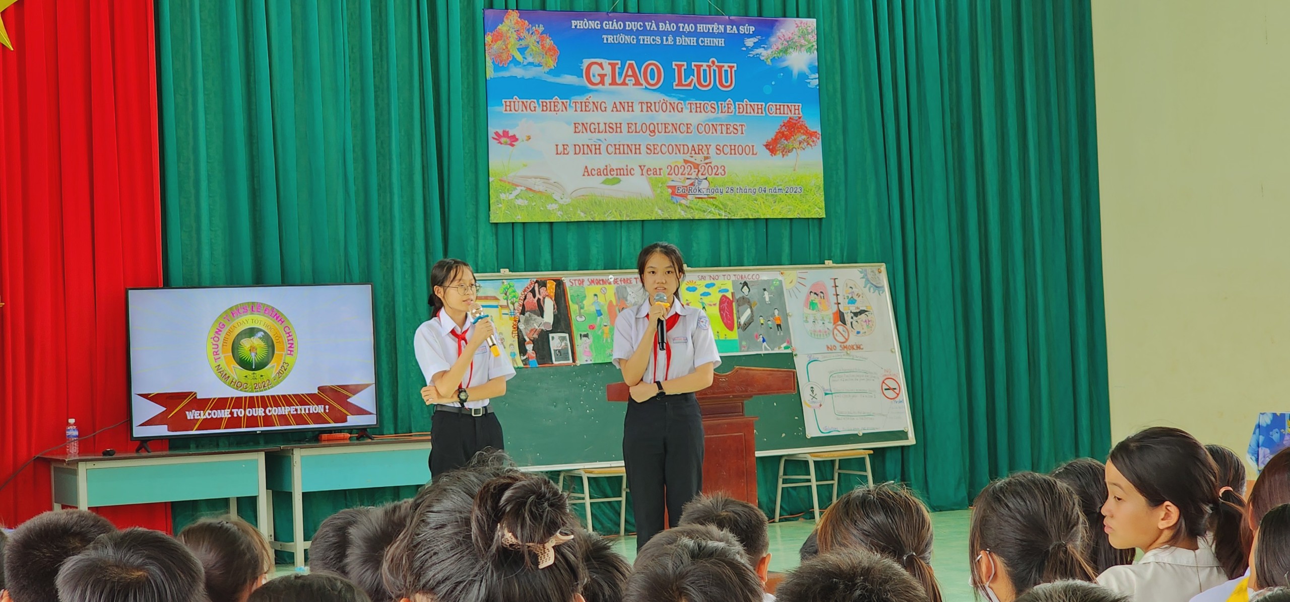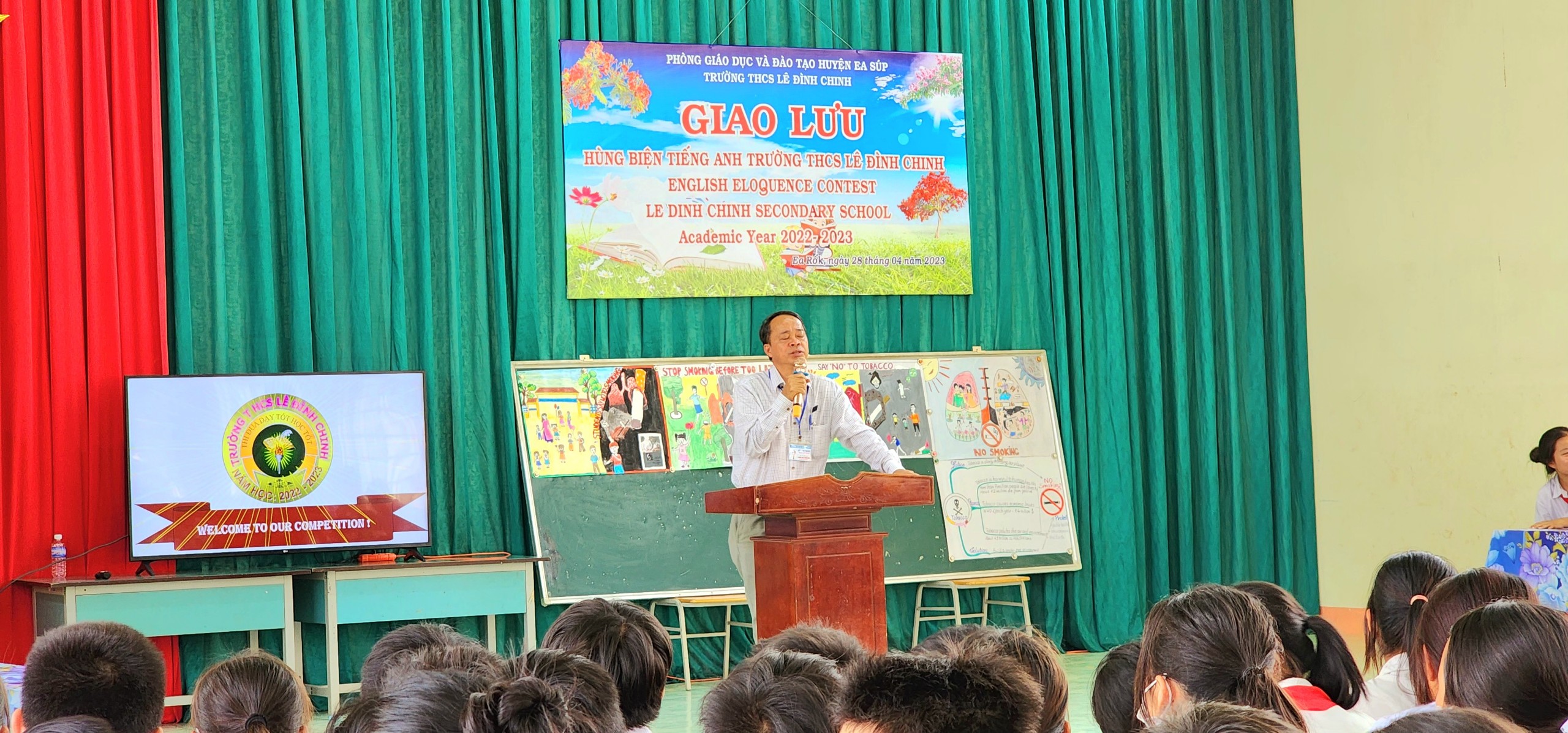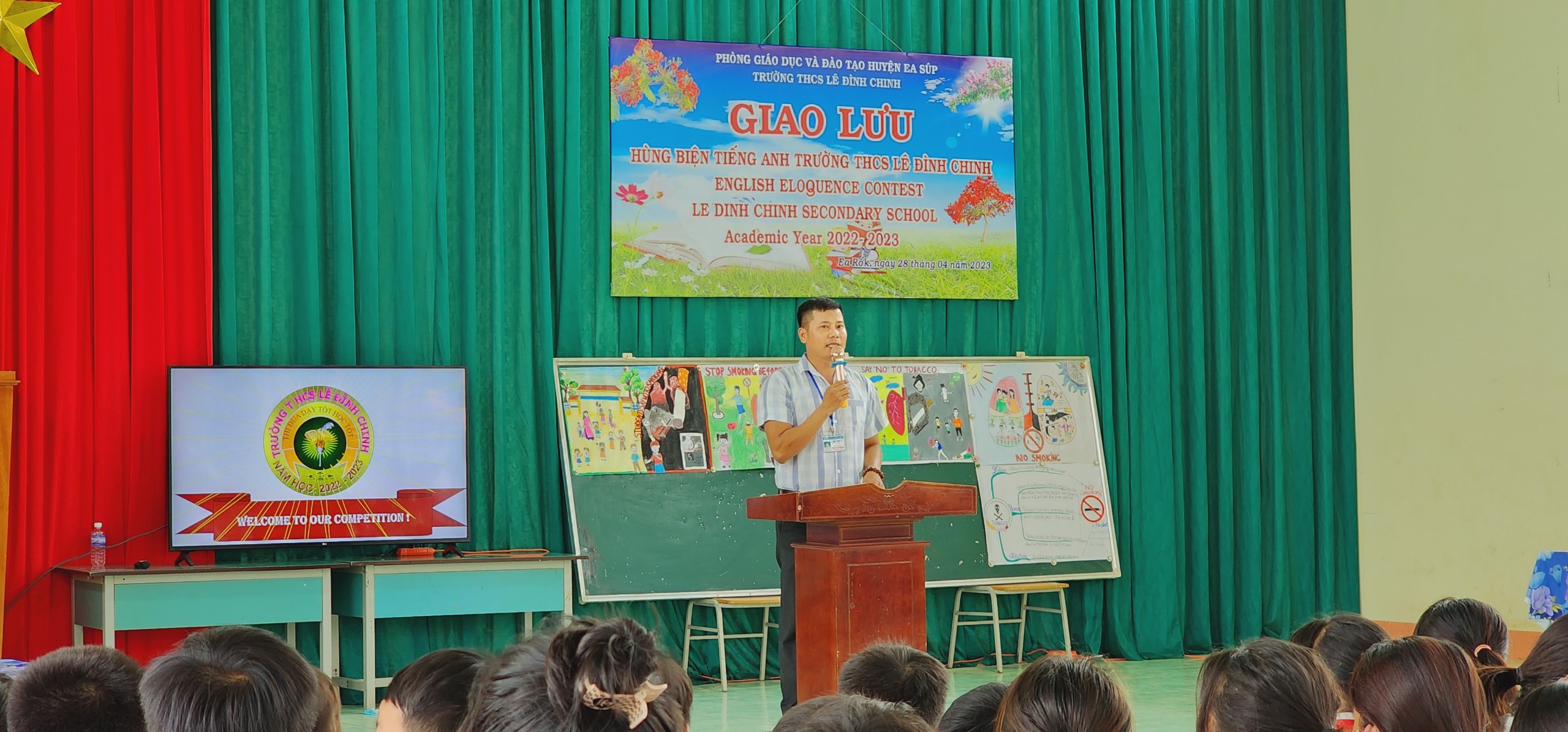 Trong không khí phấn khởi và vô cùng ý nghĩa đó, thực hiện kế hoạch nhiệm vụ năm học 2022 – 2023. Chiều ngày 28/4/2023, trường THCS Lê Đình Chinh long trọng tổ chức Cuộc thi giao lưu Hùng biện Tiếng Anh lần thứ 2 với chủ đề “Nói không với thuốc lá”, tạo sân chơi bổ ích cho các em học sinh hướng đến chào mừng các sự kiện lịch sử trọng đại của dân tộc.