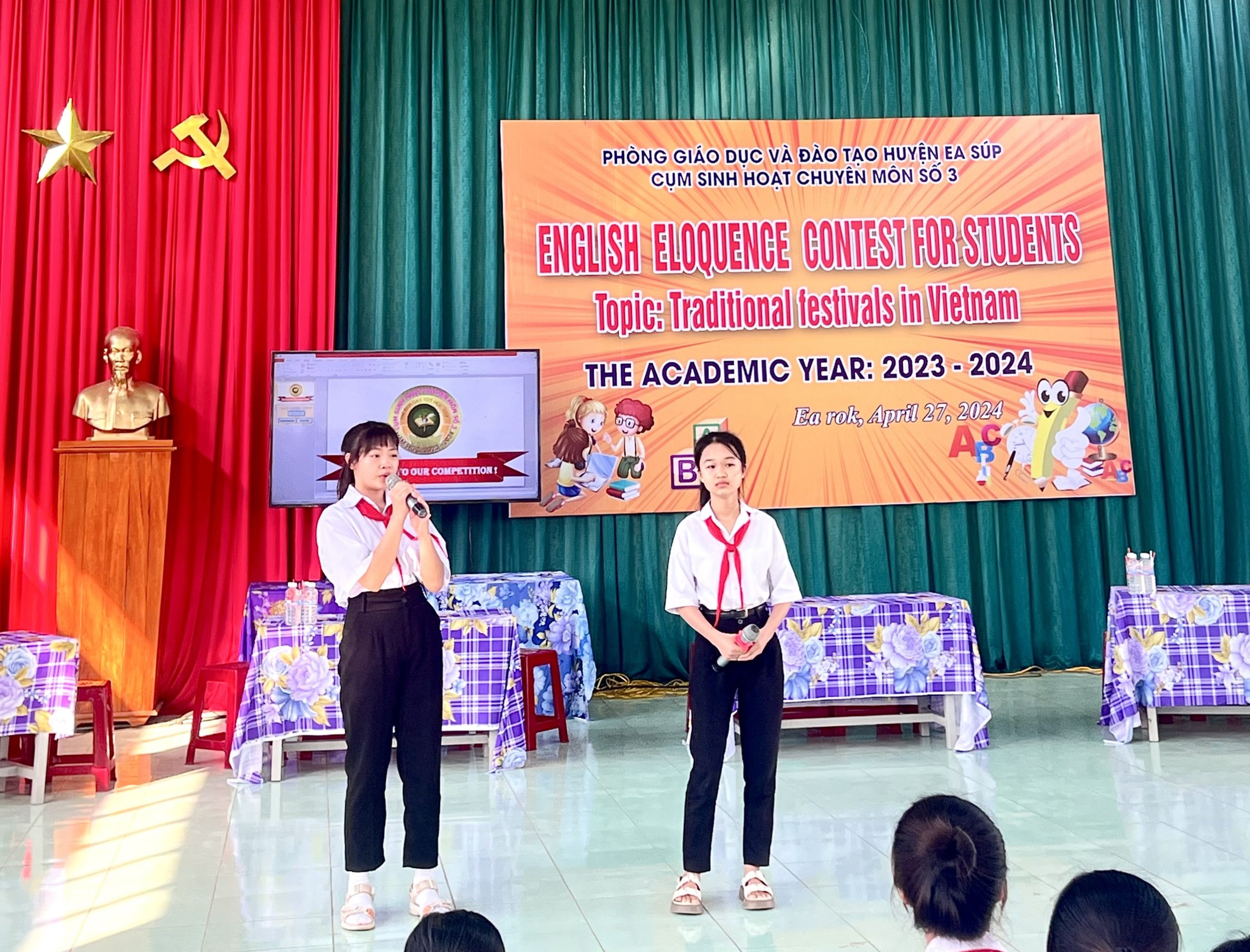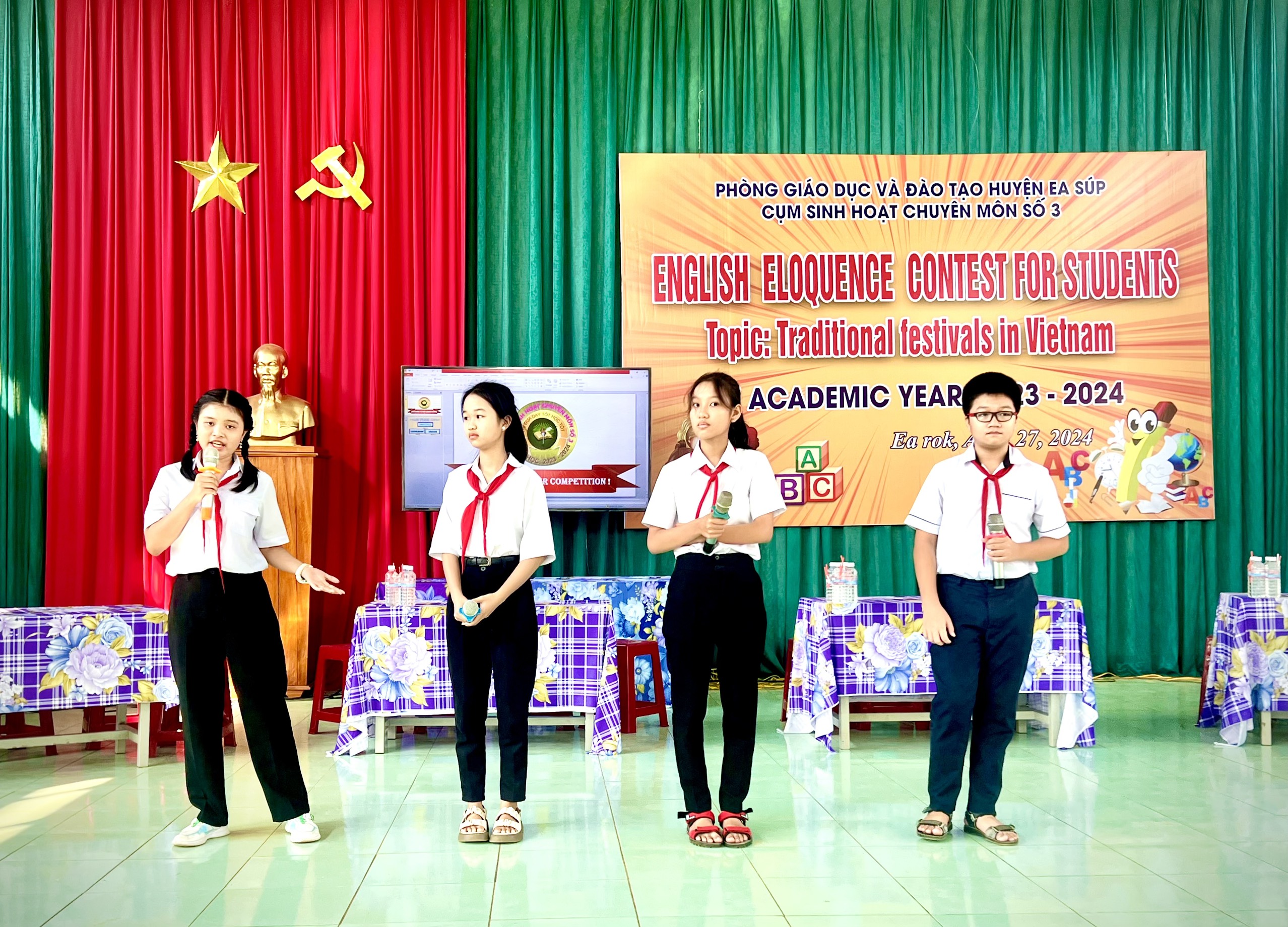 Với chủ đề: “Lễ hội truyền thống” các đội chơi đến từ 4 nhà trường trong cụm mang đến tại buổi giao lưu đã tái hiện được những nét đẹp trong các lễ hội truyền thống của đất nước ta với những sắc màu riêng của địa phương Đăk Lăk như: trường THCS Ea Lê với “Tết cổ truyền-Tết Nguyên đán Việt Nam”, trường THCS Bế Văn Đàn “ Tết Trung Thu”, trường THCS Lê Quý Đôn “Lễ hội Sầu Riêng” và trường THCS Lê Đình Chinh “Lễ hội Cà phê Buôn Mê Thuột”. Hoạt động giao lưu trải qua 04 phần thi: Giới thiệu đội chơi, kiến thức ngôn ngữ, hùng biện và thuyết trình.