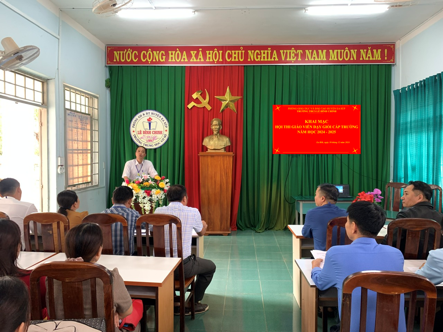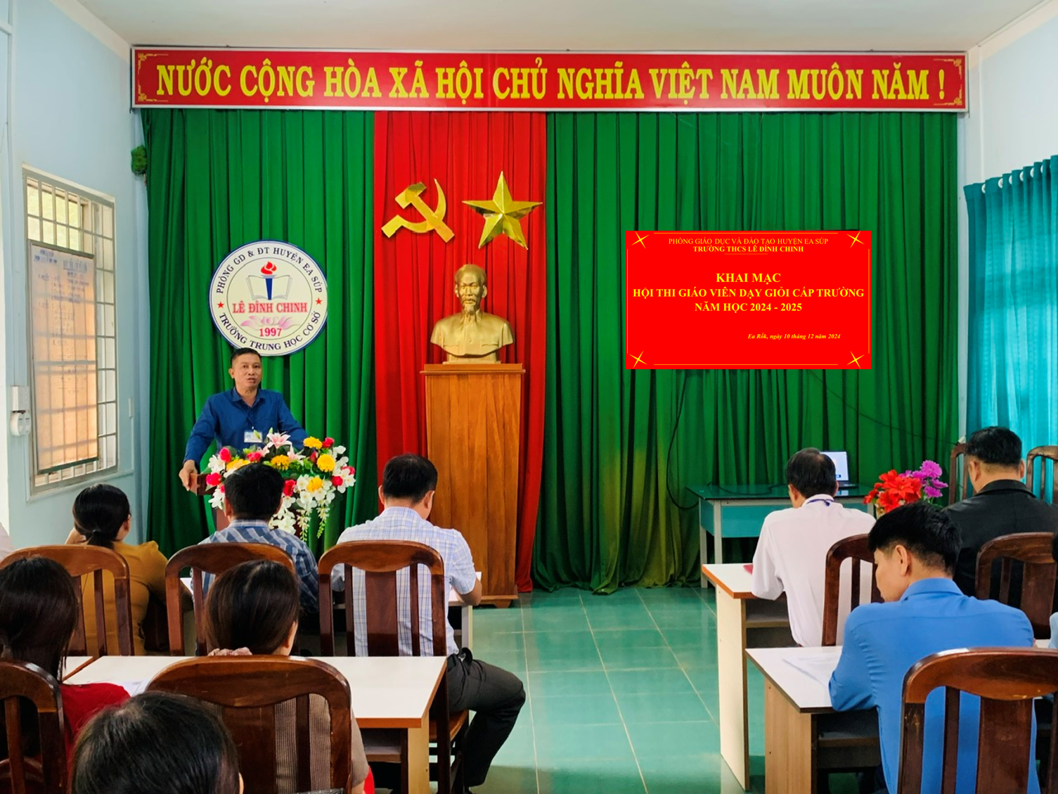 Thực hiện thực hiện chủ đề năm học của Ngành giáo dục, thực hiện Kế hoạch giáo dục nhà trường năm học 2024-2025, nhằm tiếp tục đẩy mạnh và phát huy hiệu quả phong trào thi đua “Dạy tốt, học tốt”, phong trào “Đổi mới, sáng tạo trong quản lý, giảng dạy và học tập”, hướng đến thi đua lập thành tích kỷ niệm ngày thành lập Quân đội nhân dân Việt Nam 22/12. Ngày 10/12/2024, trường THCS Lê Đình Chinh tổ chức Khai mạc hội thi giáo viên dạy giỏi cấp trường.