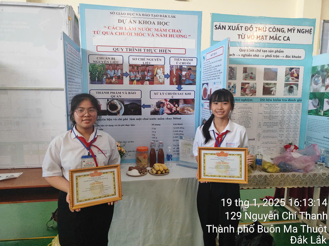 Là 1 trong 3 sản phẩm của Phòng GD&ĐT Huyện Ea Súp tham gia cuộc thi lần này, sản phẩm dự thi của Trường THCS Lê Đình Chinh với đề tài “Cách làm nước mắm chay từ quả chuối mốc và nấm hương” do em Cao Khánh Linh (8A4) và em Hồ Phạm An Nhi (8A5) thực hiện dưới sự hướng dẫn của Thầy giáo Nguyễn Minh Thảo nhận được đánh giá cao nhờ tính ứng dụng thực tế của sản phẩm và đã xuất sắc giành giải tư lĩnh vực Y sinh và khoa học sức khỏe.
