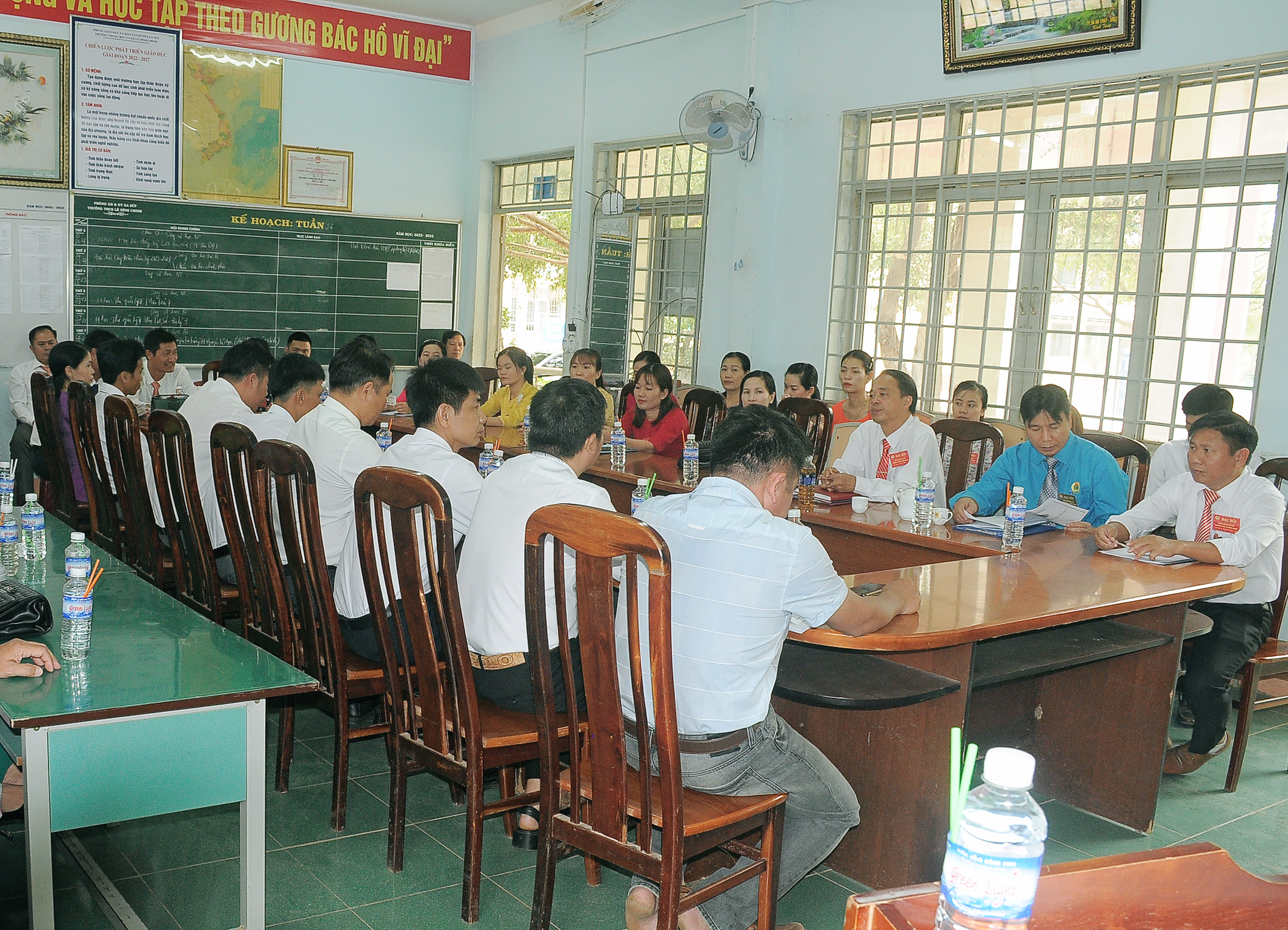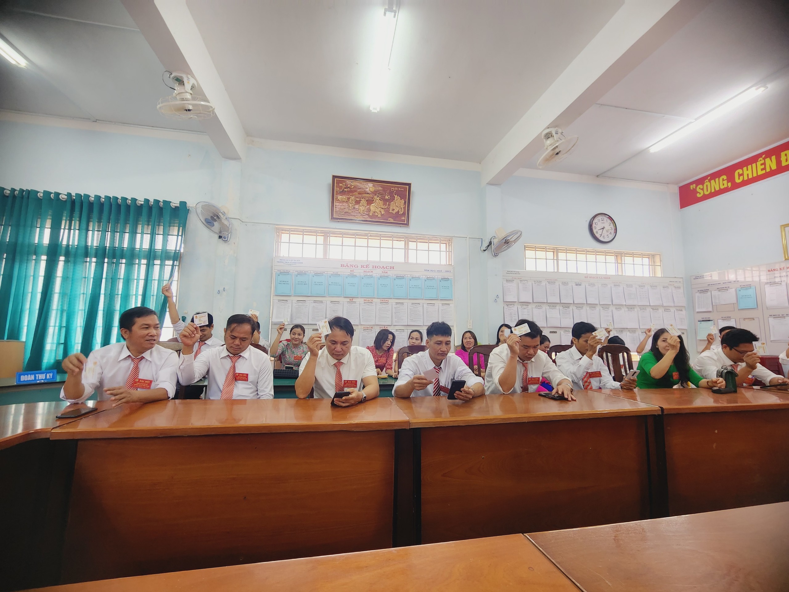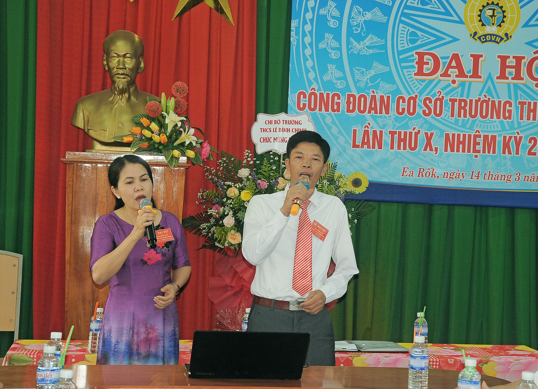 Tham dự Đại hội có đồng chí Nguyễn Văn Huân – Ủy viên BCH Liên đoàn lao động tỉnh Đăk Lăk, Chủ tịch Liên đoàn lao động huyện; Thầy Hứa Văn Thành – Bí thư chi bộ, Hiệu trưởng nhà trường cùng toàn thể đoàn viên công đoàn nhà trường.