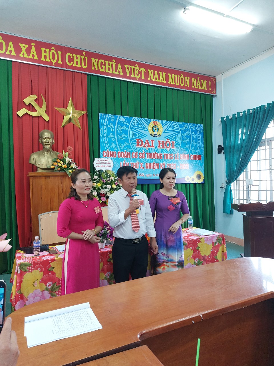 Tại Hội nghị lần thứ nhất, Ban Chấp hành khóa mới, nhiệm kỳ 2023-2028 đã bầu đồng chí Phan Văn Tiến – Phó hiệu trưởng giữ chức vụ Chủ tịch Công đoàn cơ sở trường THCS Lê Đình Chinh.