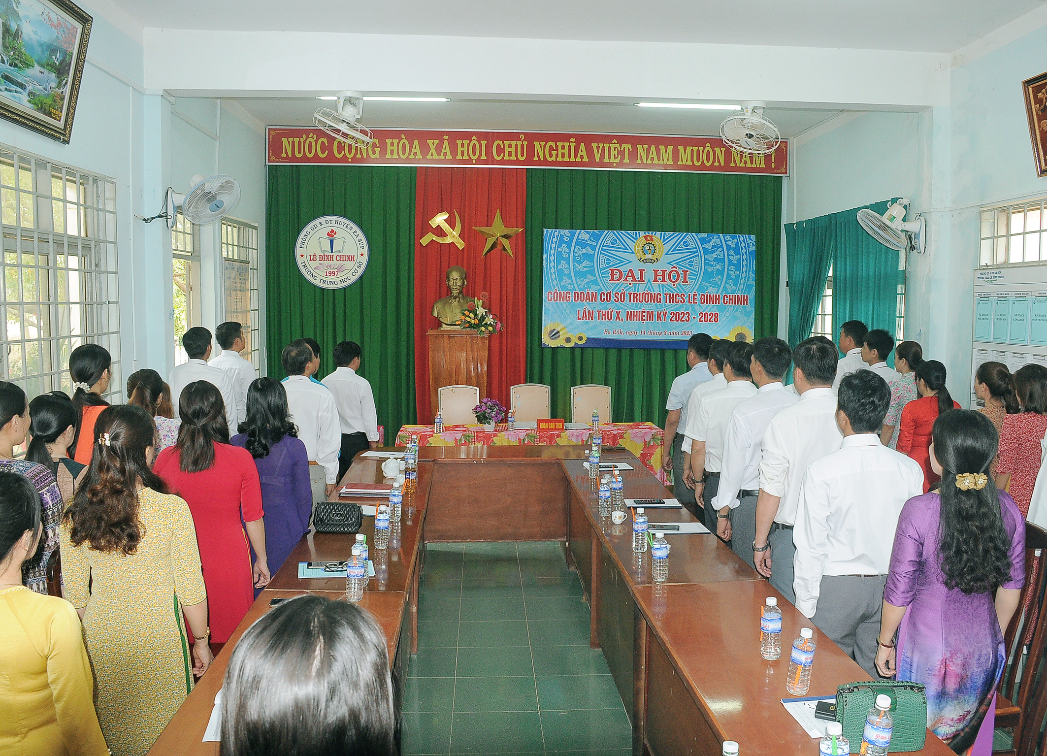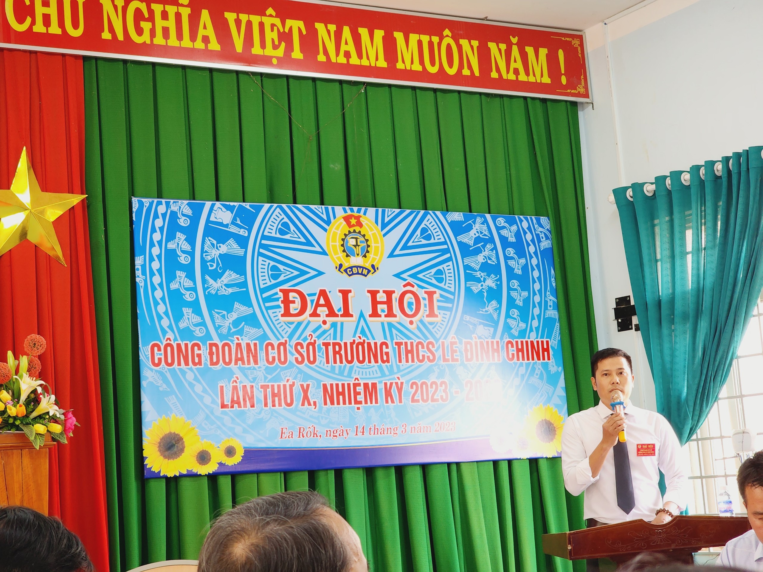 Thực hiện kế hoạch của Liên đoàn lao động huyện Ea Súp về việc tổ chức Đại hội tại các Công đoàn cơ sở trên địa bàn huyện, hướng đến Đại hội Liên đoàn lao động huyện Ea Súp lần thứ X, nhiệm kỳ 2023 – 2028. Chiều 14/3/2023, Công đoàn cơ sở trường THCS Lê Đình Chinh tổ chức Đại hội lần thứ X, nhiệm kỳ 2023-2028.