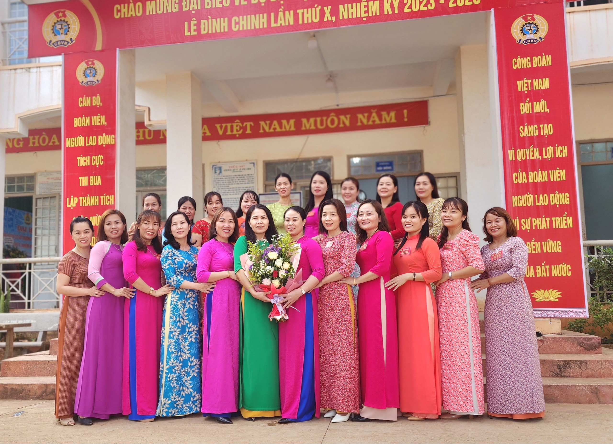 Đồng chí Phan Văn Tiến – Chủ tịch Công đoàn tặng hoa cảm ơn các đồng chí trong Ban Chấp hành nhiệm kỳ 2020-2023 không tái cử nhiệm kỳ 2023-2028.