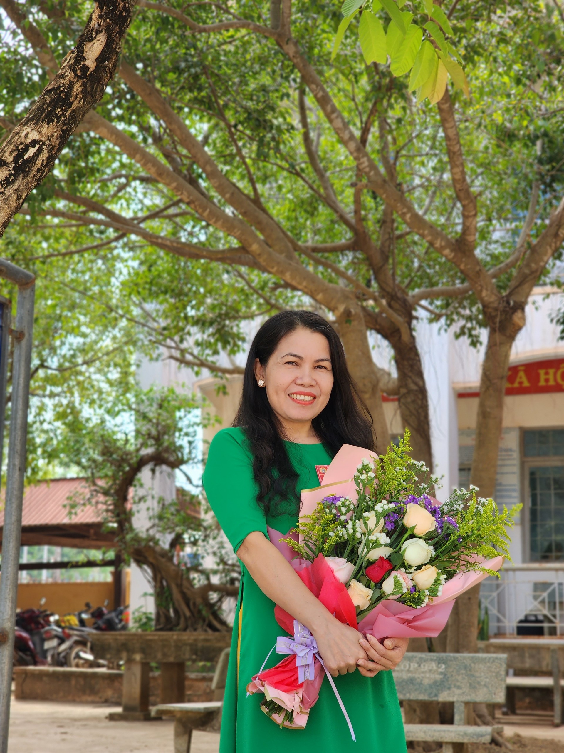 Đồng chí Hứa Văn Thành – Bí thư chi bộ, Hiệu trưởng tặng hoa chúc mừng Ban chấp hành khóa mới
