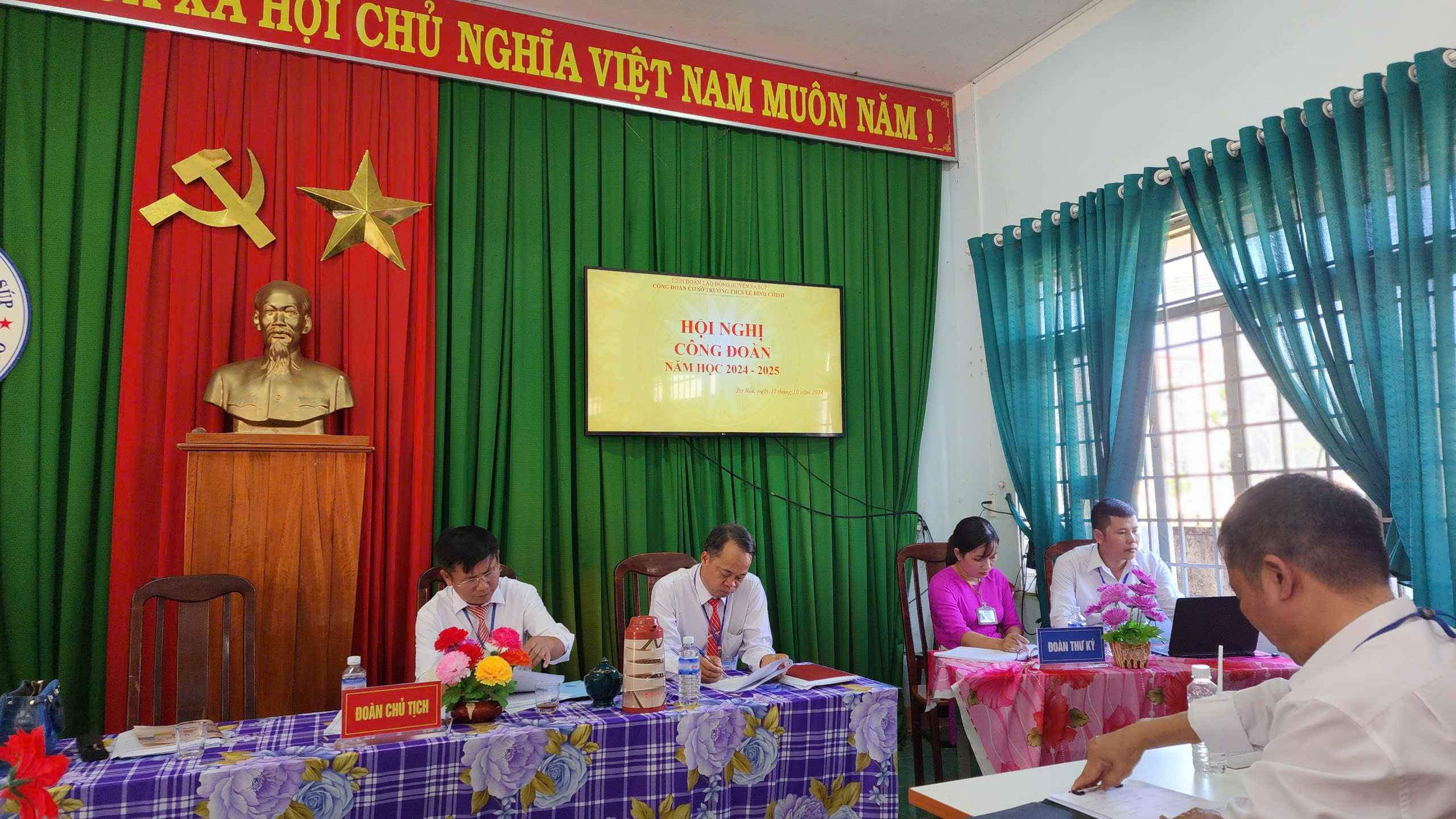 Được sự đồng ý của Liên đoàn lao động Huyện Ea Súp và Chi bộ trường THCS Lê Đình Chinh; nhằm tổng kết hoạt động Công đoàn trong năm học 2023-2024 và thống nhất mục tiêu, phương hướng, nhiệm vụ, giải pháp hoạt động công đoàn năm học 2024-2025. Chiều ngày 11/10/2024, CĐCS trường THCS Lê Đình Chinh đã tổ chức Hội nghị Công đoàn năm học 2024-2025.