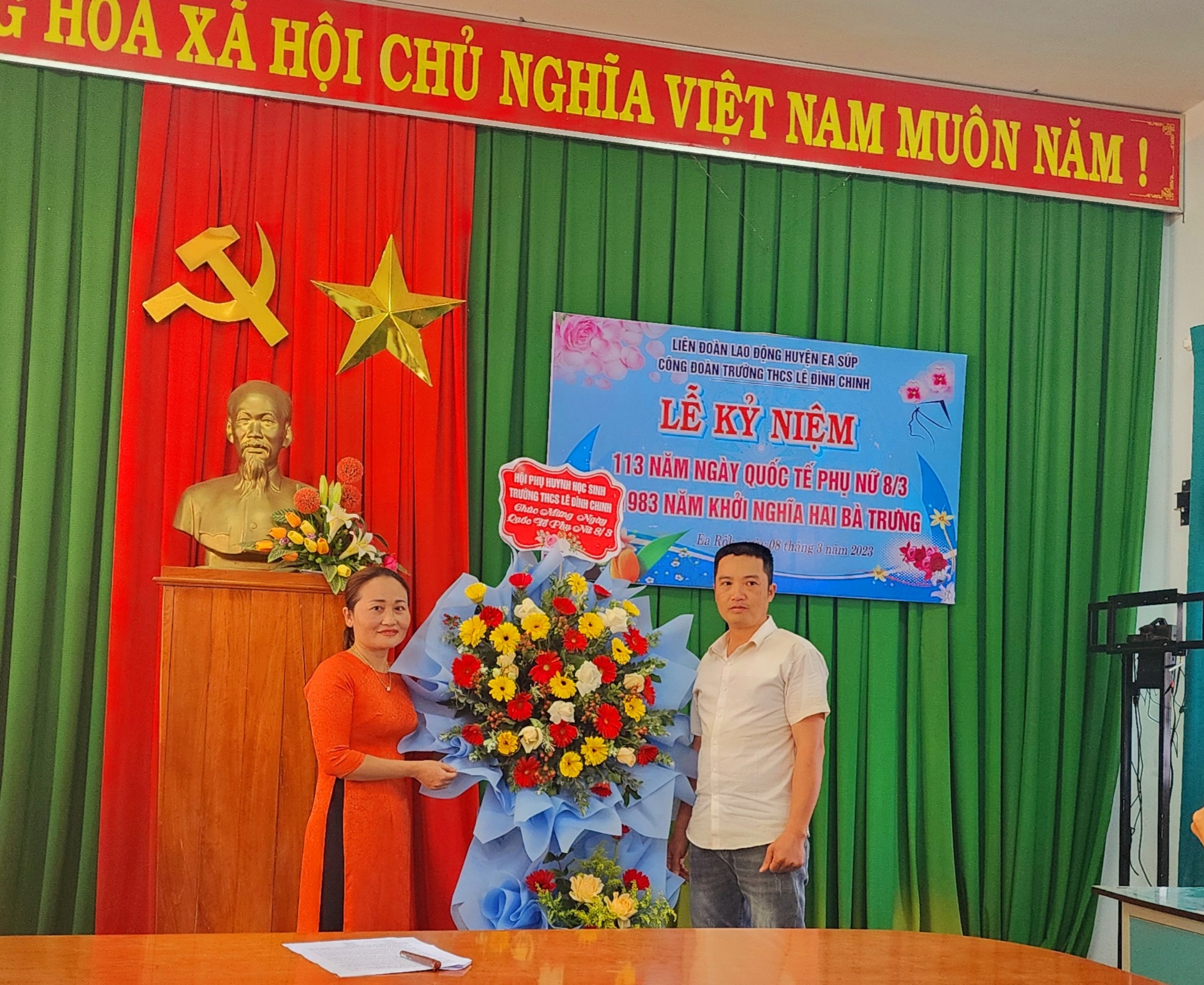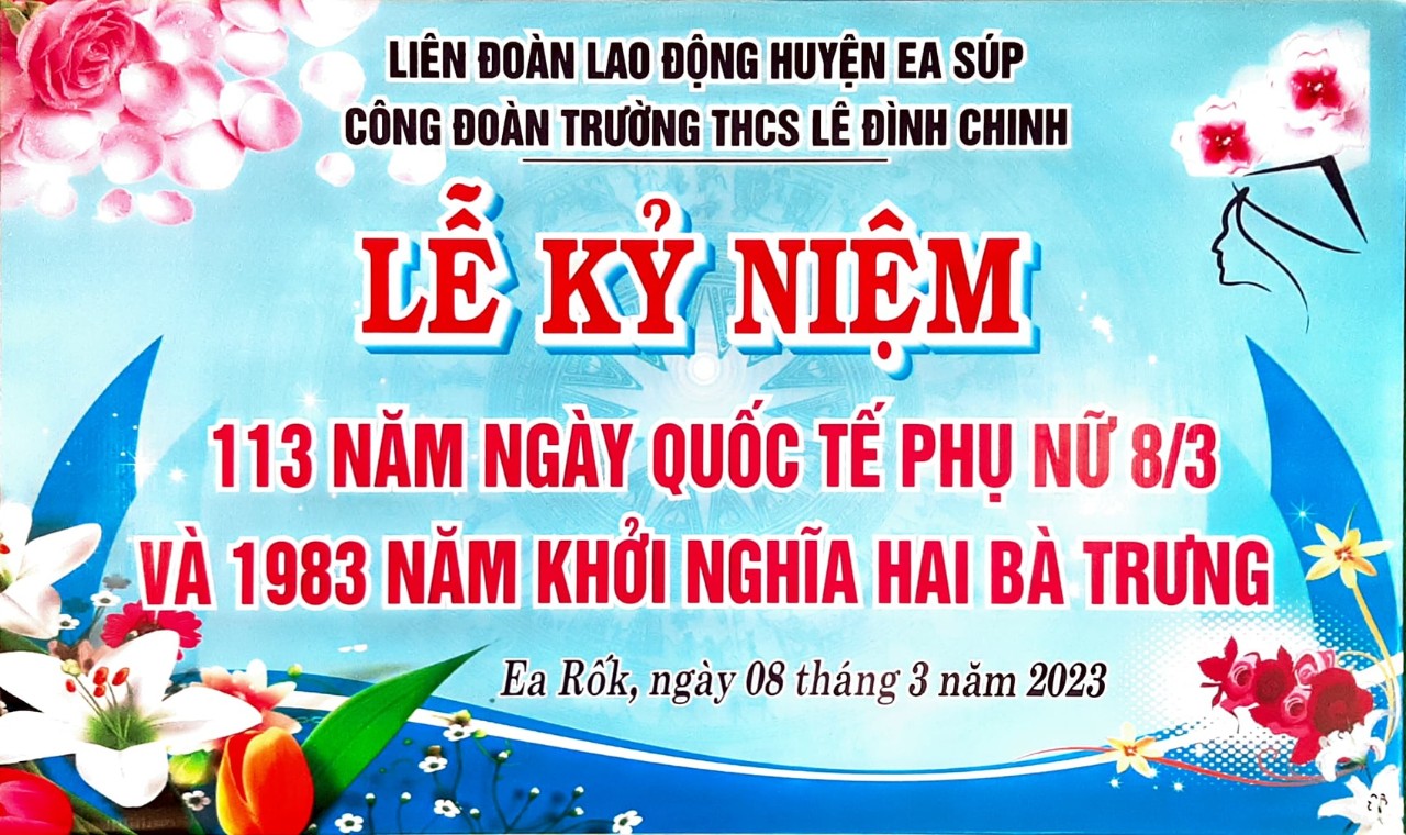 Ban chấp hành Công đoàn trường THCS Lê Đình Chinh đã xây dựng kế hoạch và tổ chức lễ kỉ niệm vào chiều 8/3 với các hoạt động vô cùng thiết thực và ý nghĩa: ôn lại truyền thống, ý nghĩa lịch sử Ngày Quốc tế phụ nữ 8/3; truyền thống vẻ vang của phụ nữ Việt Nam nói chung và những thành tích đạt được của chị em phụ nữ nhà trường nói riêng; tổ chức các trò chơi (Kéo co, đánh bom, cướp cờ,…). Các hoạt động diễn ra trong không khí sôi nổi, vui vẻ, phát huy tinh thần đoàn kết, gắn bó của chị em nói riêng và tập thể nhà trường nói chung. Trong buổi lễ, Ban đại diện cha mẹ học sinh của nhà trường cũng đã gửi lẵng hoa chúc mừng các cô nhân ngày Quốc tế phụ nữ 8/3.