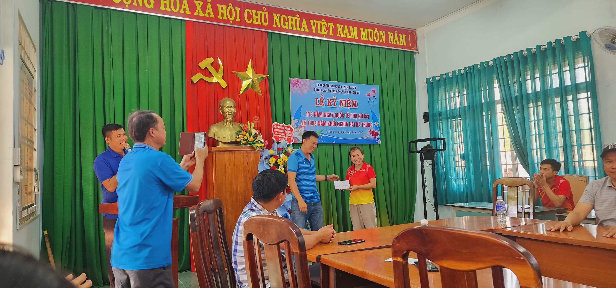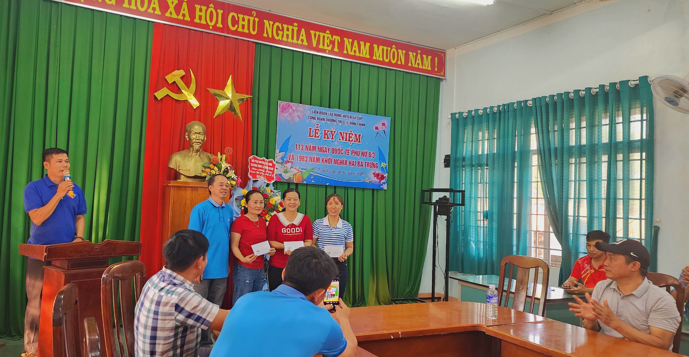 Buổi lễ kỉ niệm cũng là dịp để chị em được giao lưu, trao đổi kinh nghiệm trong thực hiện công tác chuyên môn giảng dạy, giữ gìn hạnh phúc gia đình; thăm hỏi, động viên nhau phấn đấu hoàn thành xuất sắc mọi nhiệm vụ được giao, xứng đáng với 8 chữ vàng Bác Hồ tặng phụ nữ Việt Nam “Anh hùng – Bất khuất – Trung hậu – Đảm đang”.