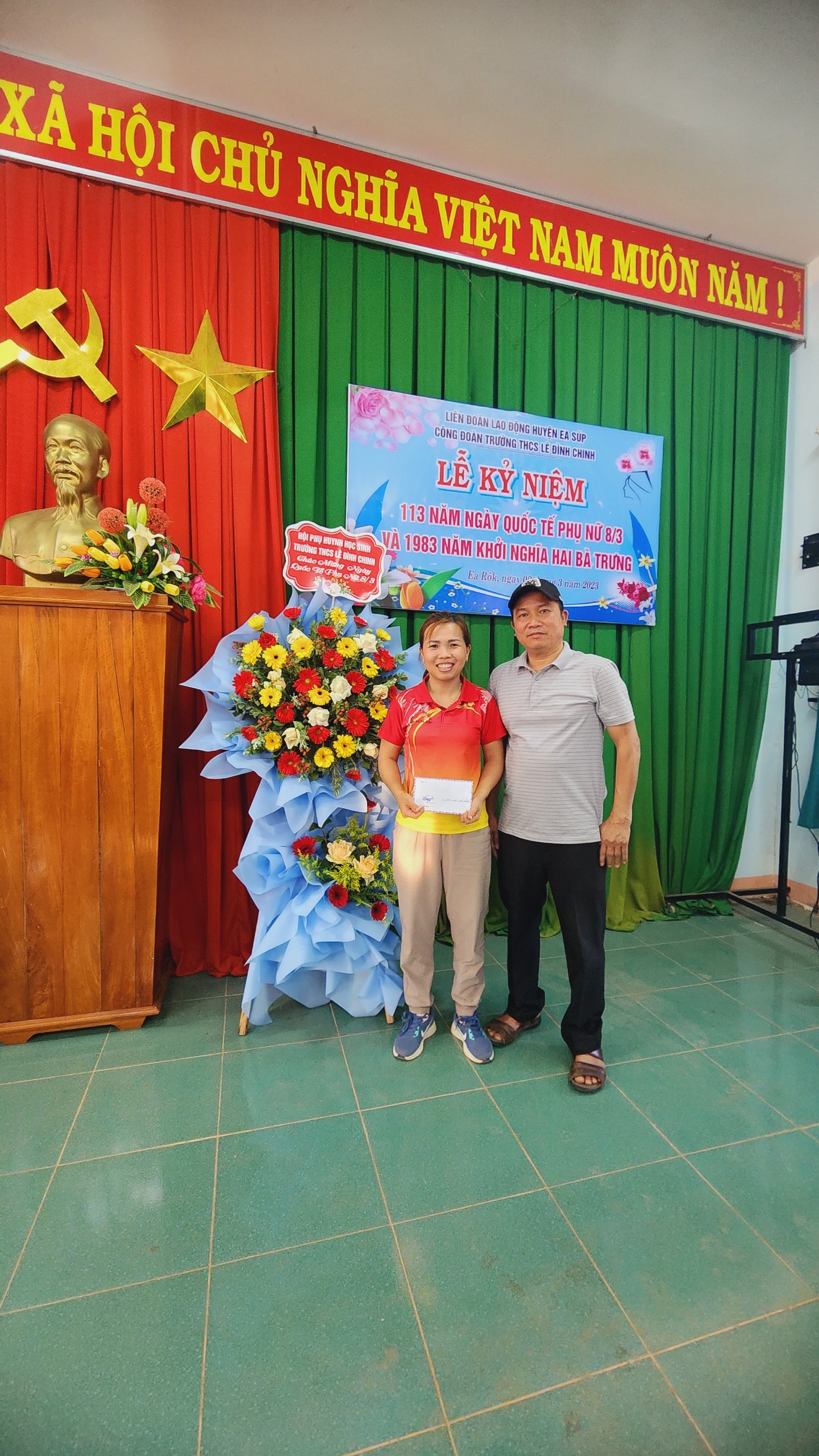 Thầy Tạ Văn Suy – Phó Hiệu trưởng cùng cô Nguyễn Thị Hồng
