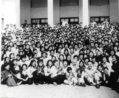 Chủ tịch Hồ Chí Minh chụp ảnh lưu niệm với các đại biểu dự Đại hội Toàn quốc lần thứ II