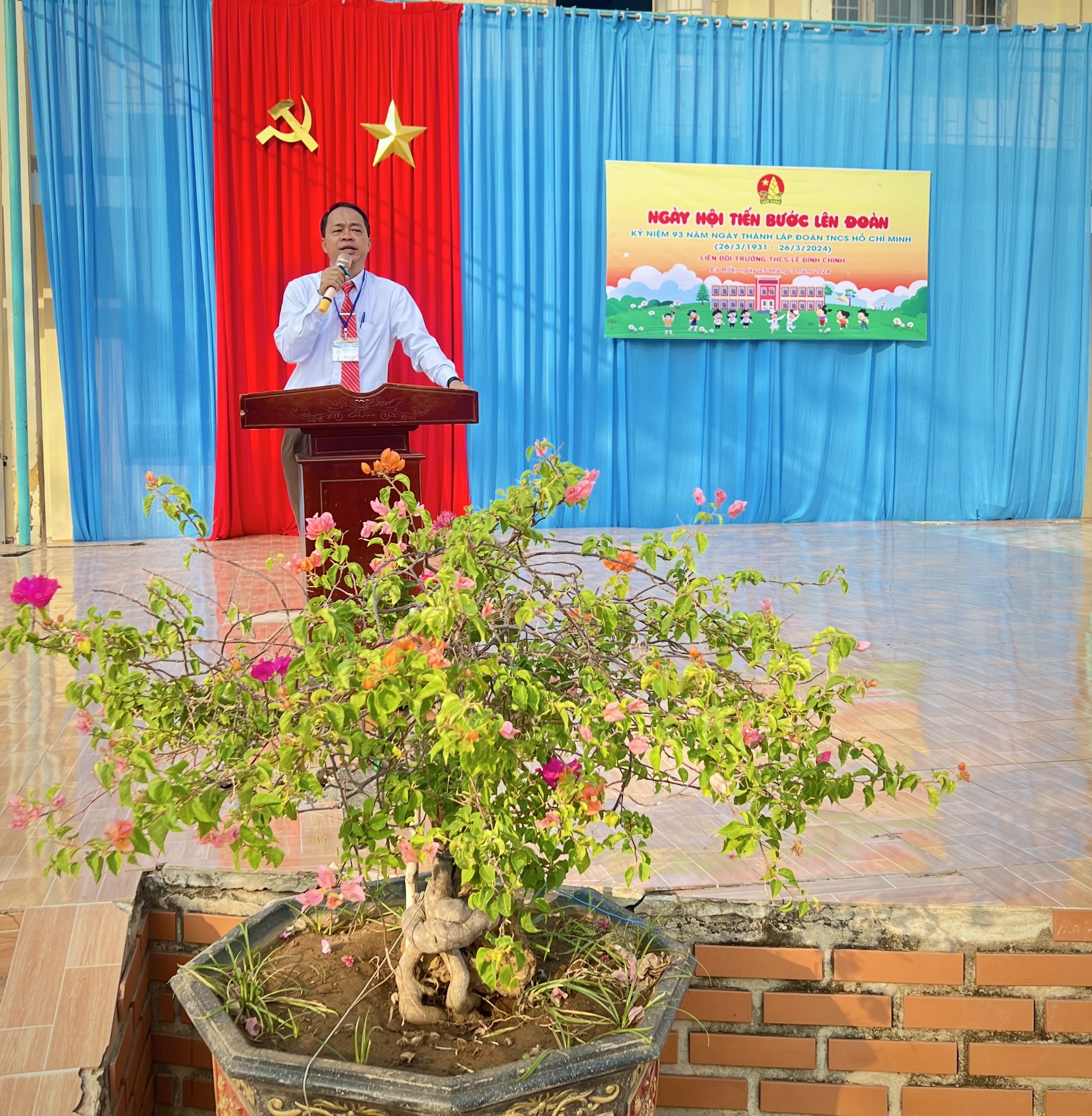 | Thầy Hứa Văn Thành – Bí thư chi bộ, Hiệu trưởng khai mạc ngày hội |