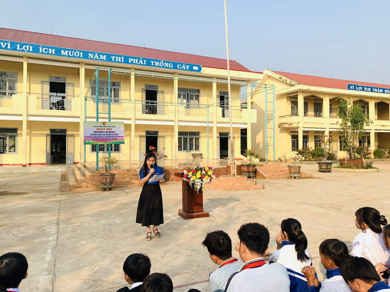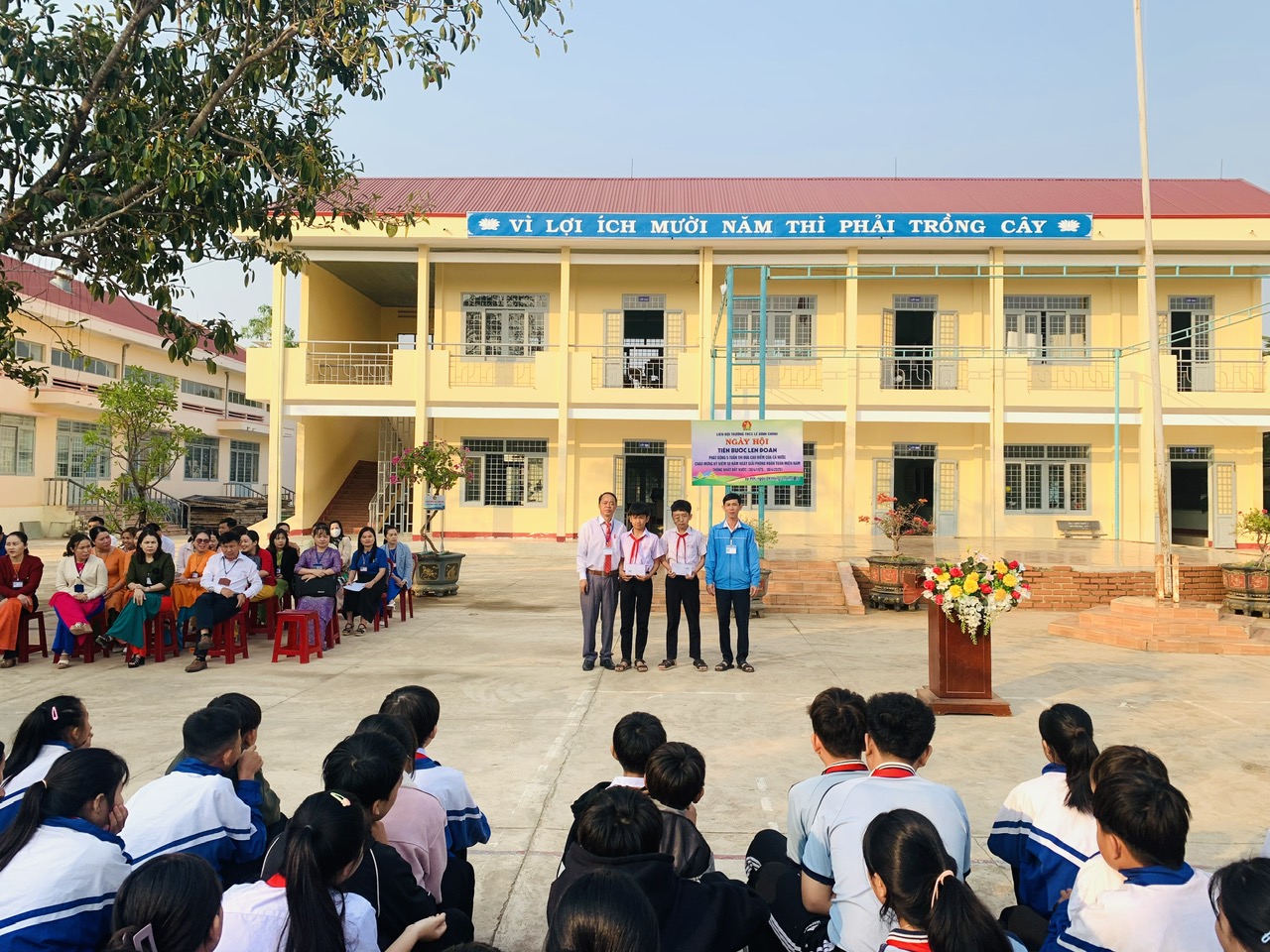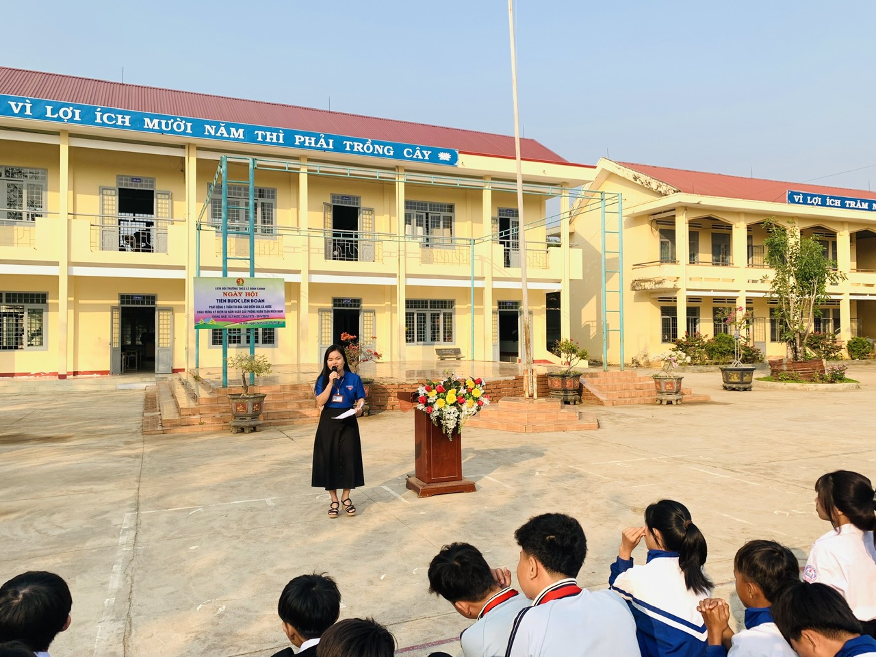 Nhằm thiết thực chào mừng kỷ niệm 94 năm Ngày thành lập Đoàn TNCS Hồ Chí Minh, với mục tiêu tạo sân chơi lành mạnh, thiết thực, tạo phong trào thi đua sôi nổi cho các em học sinh trong toàn trường trên tinh thần “Vui để học”. Liên đội kết hợp cùng với Chi đoàn trường tổ chức Ngày hội “Tiến bước lên đoàn” năm 2025, phát động các tuần thi đua cao điểm tới các Chi đội Chào mừng kỷ niệm 94 năm Ngày thành lập Đoàn TNCS Hồ Chí Minh và 50 năm Ngày giải phóng miền Nam, thống nhất đất nước (30/4/1975 – 30/4/2025) với nhiều nội dung phong phú. Điển hình như tuyên truyền giao lưu, tiếp sức đến trường, kết nạp Đoàn viên khối 9, tuyên dương học sinh đạt thành tích cao trong kì thi văn hóa cấp tỉnh, tham gia tiết học di sản.