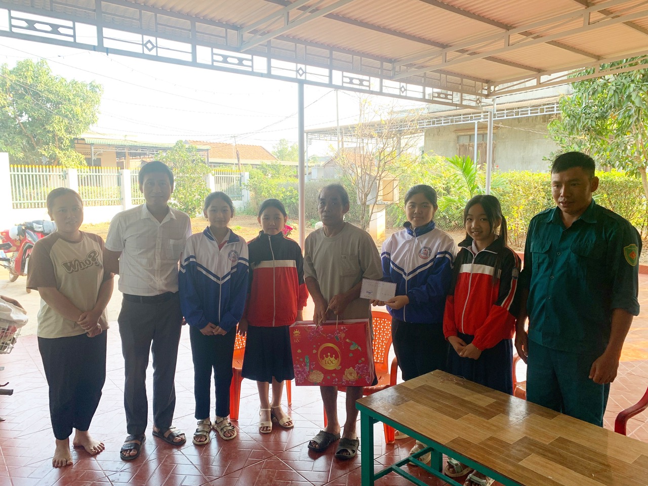 Đồng thời, nhằm phát huy truyền thống “Uống nước nhớ nguồn”, phong trào Trần Quốc Toản, sáng ngày 02/02/2024, Liên đội đã kết hợp với Liên đội Tiểu học Ea Rốk thăm hỏi tặng quà 2 gia đình có công với cách mạng theo danh sách giới thiệu của Ban chỉ huy xã đội xã Ea Rốk gồm: Gia đình bà Mai Thị Khoa và Gia đình ông Đinh Minh Tuần. Mỗi suất quà trị giá 500.000đồng.
