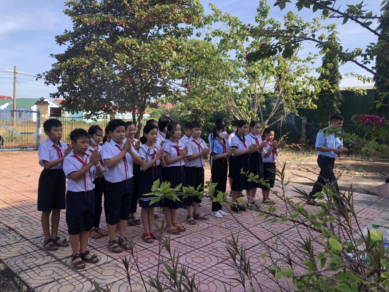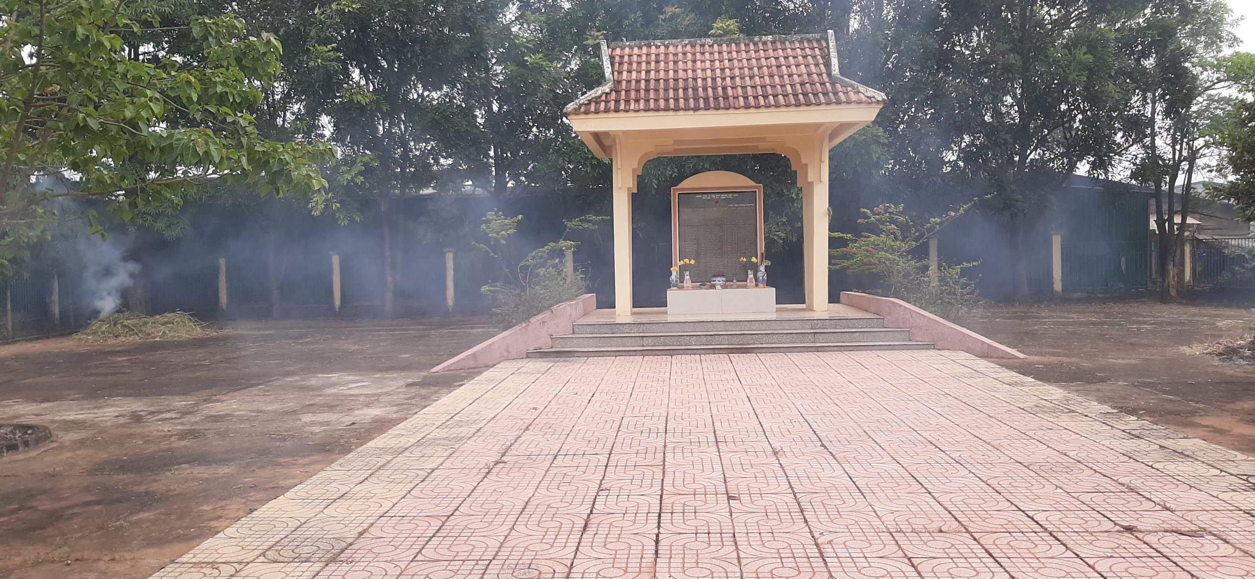 Thầy Bùi Thọ Ý – Giáo viên TPT Đội cùng các em học sinh thắp hương tri ân tại Đài bia tưởng niệm của xã Ea Rốk.