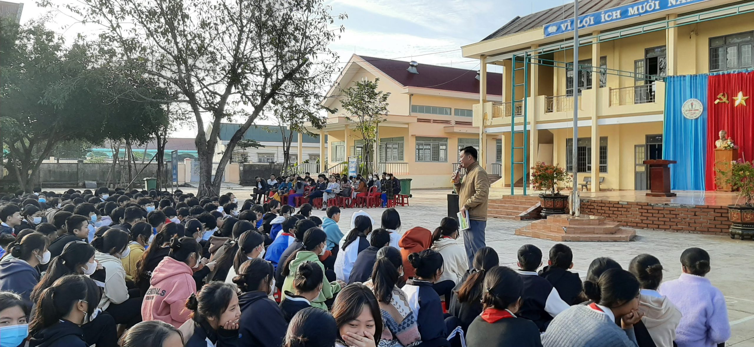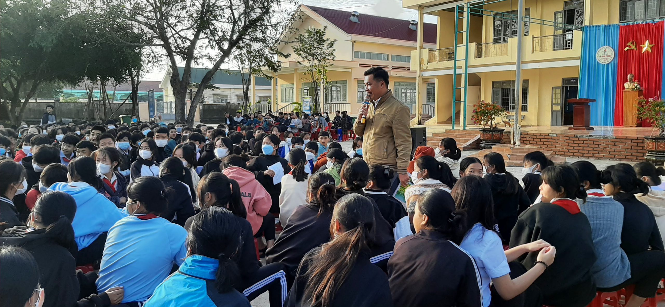 Thầy Hứa Văn Thành – Hiệu trưởng nhà trường phát biểu trước buổi tuyên truyền