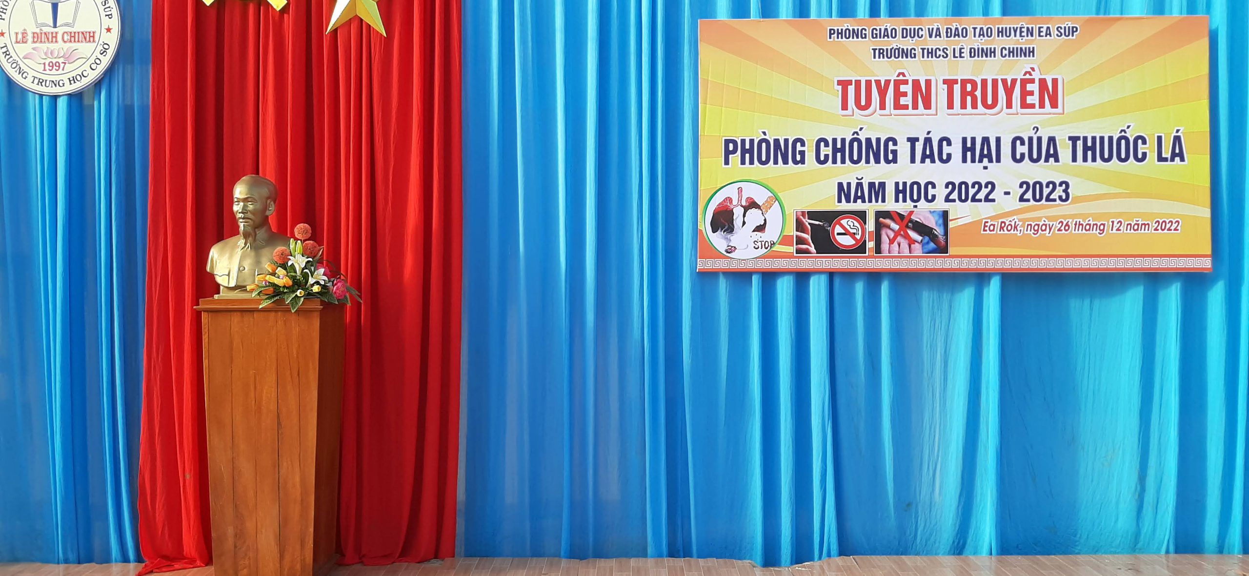 Sáng ngày 26/12/2022, trường THCS Lê Đình Chinh tổ chức tuyên truyền phòng chống tác hại của thuốc lá cho toàn thể đội ngũ cán bộ, giáo viên, nhân viên và học sinh nhà trường.