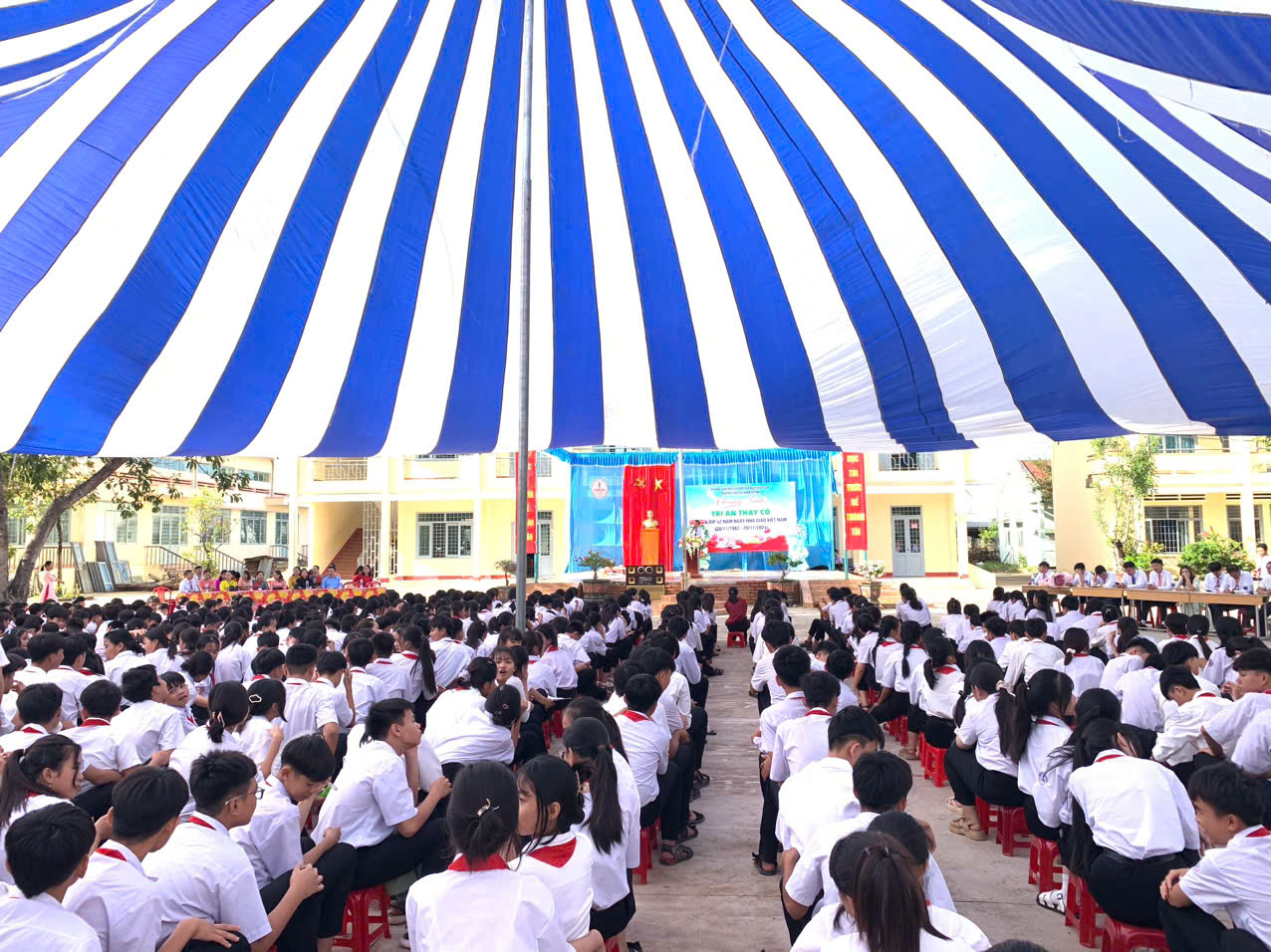 Đây là hoạt động vô cùng ý nghĩa, nhằm tôn vinh và tri ân những đóng góp to lớn của đội ngũ nhà giáo trong sự nghiệp phát triển giáo dục và đào tạo. Thầy Hứa Văn Thành – Bí thư chi bộ, Hiệu trưởng nhà trường ôn lại truyền thống 42 năm Ngày Nhà giáo Việt Nam (20/11/1982 – 20/11/2024), đồng thời đánh giá lại những thành quả giáo dục của nhà trường trong năm học qua đã đạt được.