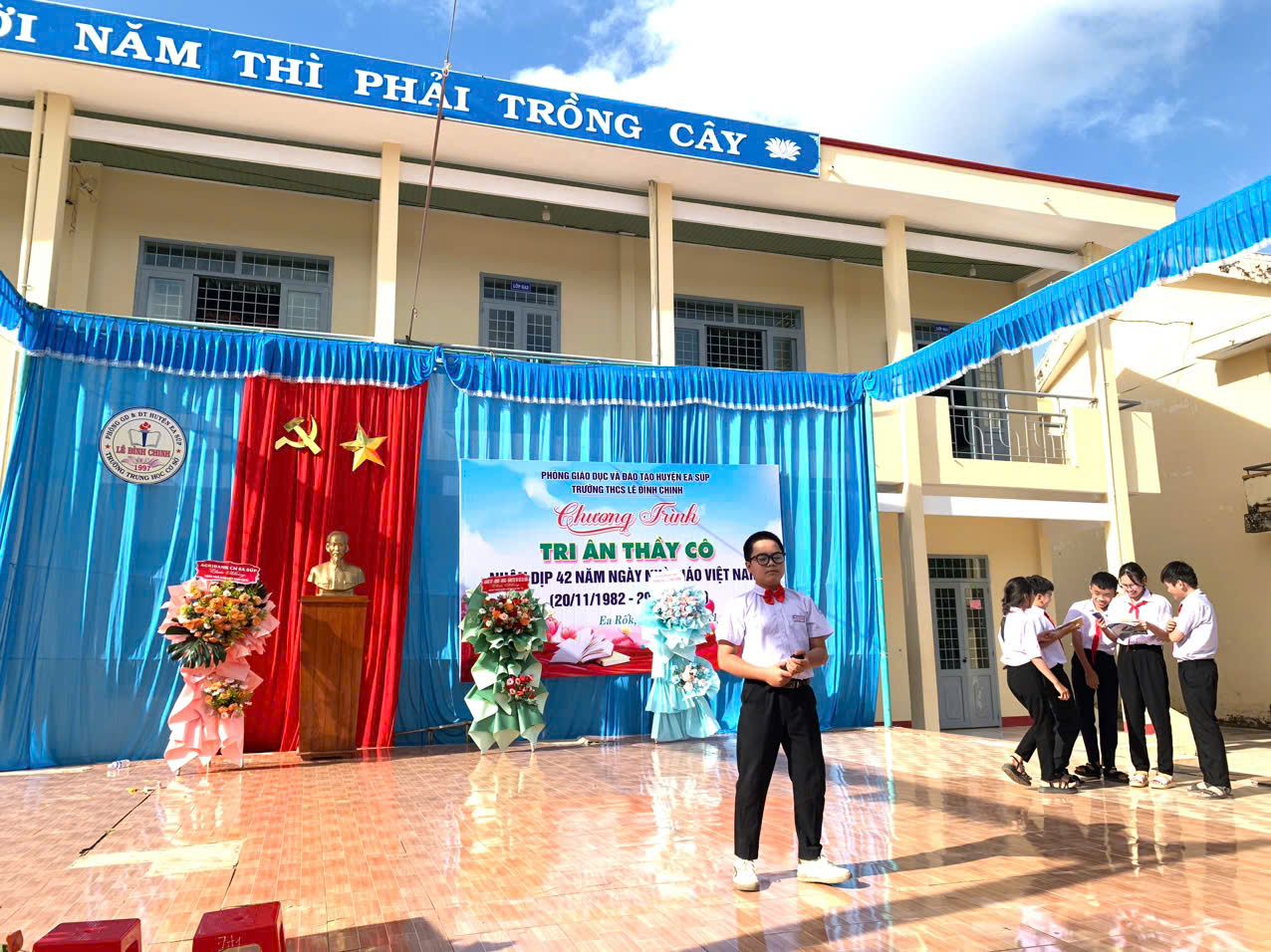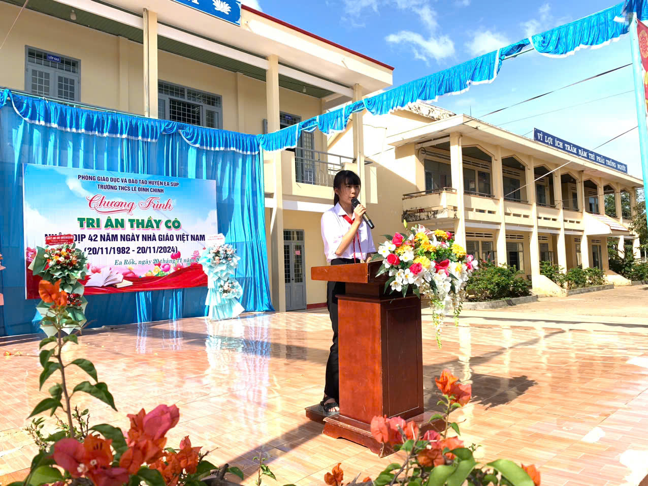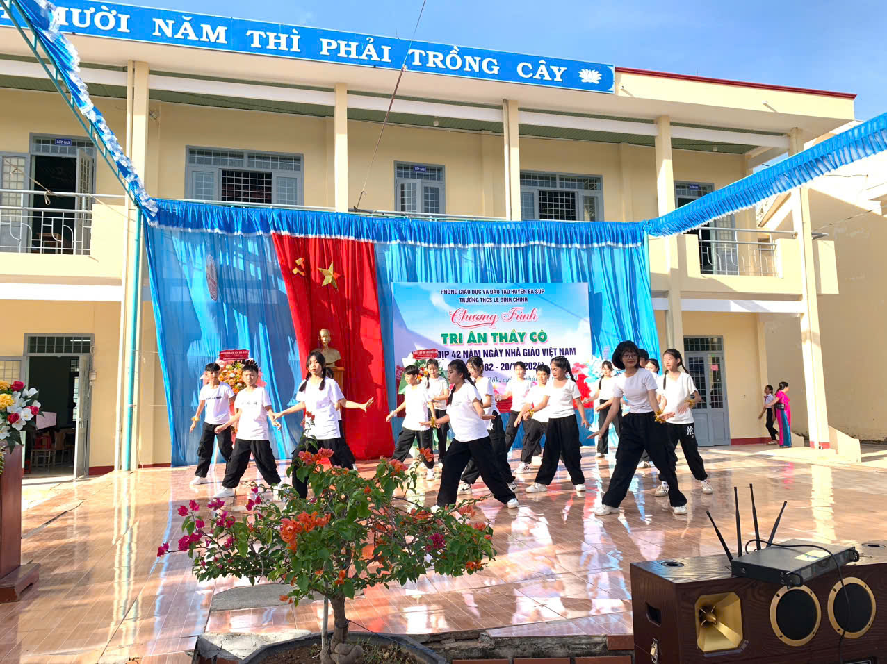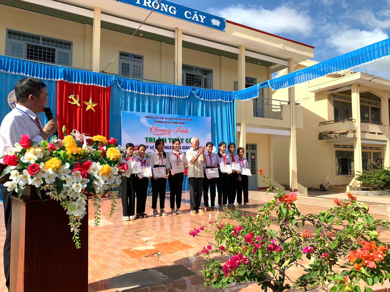 Hoà chung với khí thế tưng bừng, phấn khởi của ngành giáo dục cả nước kỉ niệm 42 năm ngày nhà giáo việt nam (20/11/1982 – 20/11/2024). Thực hiện kế hoạch năm học và được sự nhất trí cao của lãnh đạo Phòng GD&ĐT huyện Ea Súp, Đảng ủy – Chính quyền địa phương xã Ea Rốk, sáng 20/11/2024, trong tiết trời mát mẻ của mùa thu, trường THCS Lê Đình Chinh đã long trọng tổ chức chương trình “Tri ân thầy cô” kỷ niệm 42 năm ngày Nhà giáo Việt Nam (20/11/1982 – 20/11/2024).