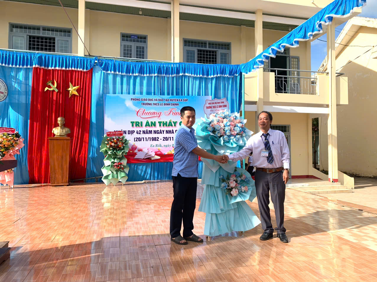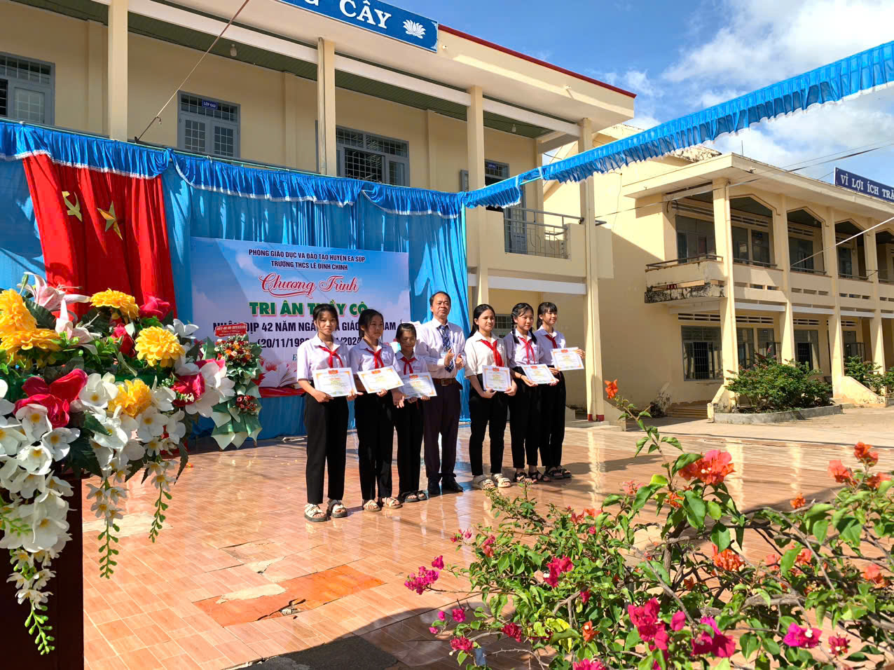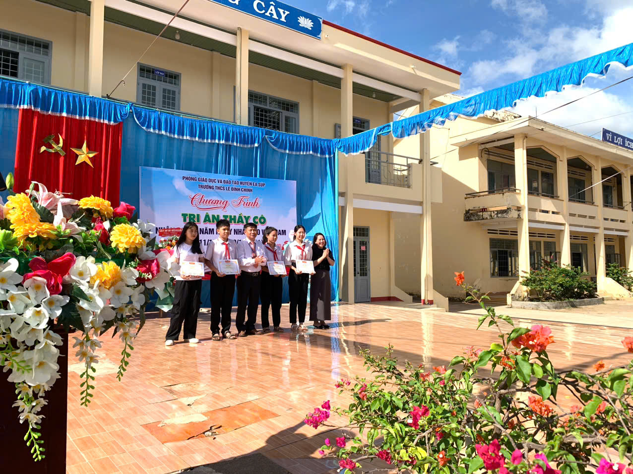 Hoà chung với khí thế tưng bừng, phấn khởi của ngành giáo dục cả nước kỉ niệm 42 năm ngày nhà giáo việt nam (20/11/1982 – 20/11/2024). Thực hiện kế hoạch năm học và được sự nhất trí cao của lãnh đạo Phòng GD&ĐT huyện Ea Súp, Đảng ủy – Chính quyền địa phương xã Ea Rốk, sáng 20/11/2024, trong tiết trời mát mẻ của mùa thu, trường THCS Lê Đình Chinh đã long trọng tổ chức chương trình “Tri ân thầy cô” kỷ niệm 42 năm ngày Nhà giáo Việt Nam (20/11/1982 – 20/11/2024).