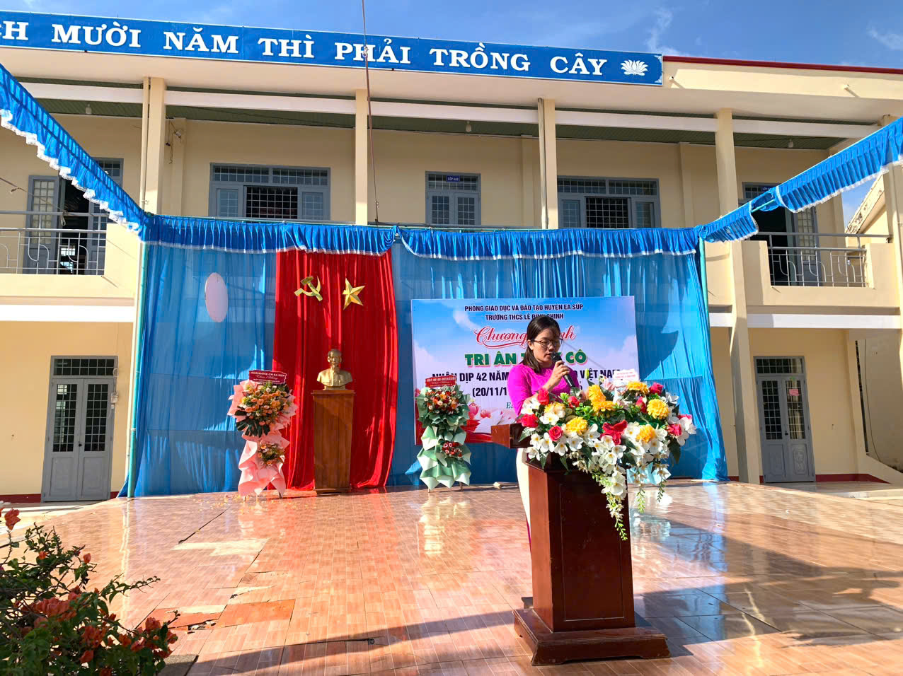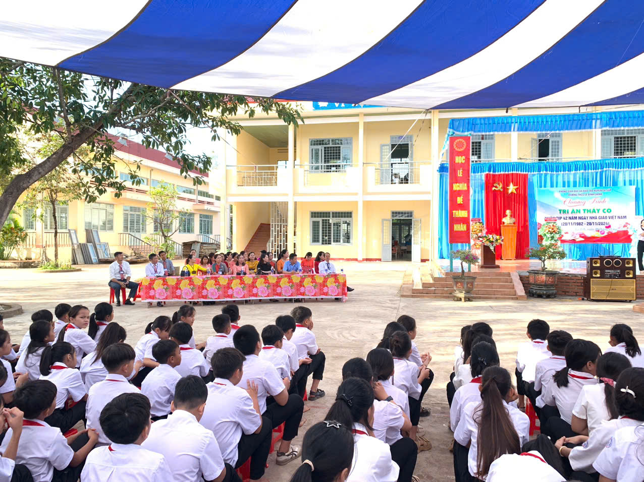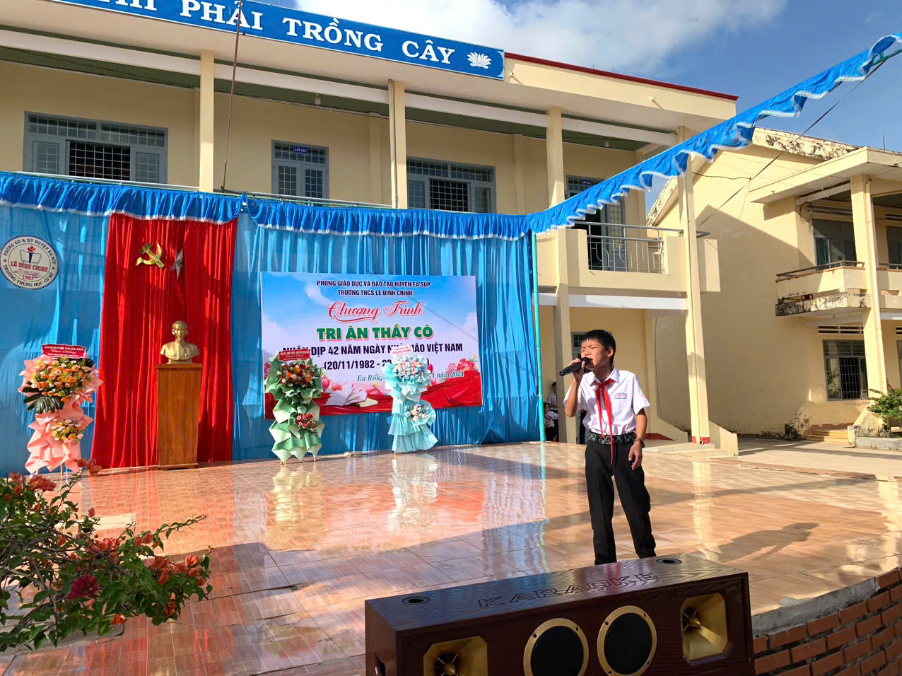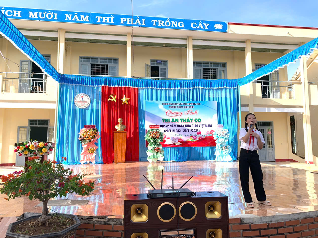 Hoà chung với khí thế tưng bừng, phấn khởi của ngành giáo dục cả nước kỉ niệm 42 năm ngày nhà giáo việt nam (20/11/1982 – 20/11/2024). Thực hiện kế hoạch năm học và được sự nhất trí cao của lãnh đạo Phòng GD&ĐT huyện Ea Súp, Đảng ủy – Chính quyền địa phương xã Ea Rốk, sáng 20/11/2024, trong tiết trời mát mẻ của mùa thu, trường THCS Lê Đình Chinh đã long trọng tổ chức chương trình “Tri ân thầy cô” kỷ niệm 42 năm ngày Nhà giáo Việt Nam (20/11/1982 – 20/11/2024).