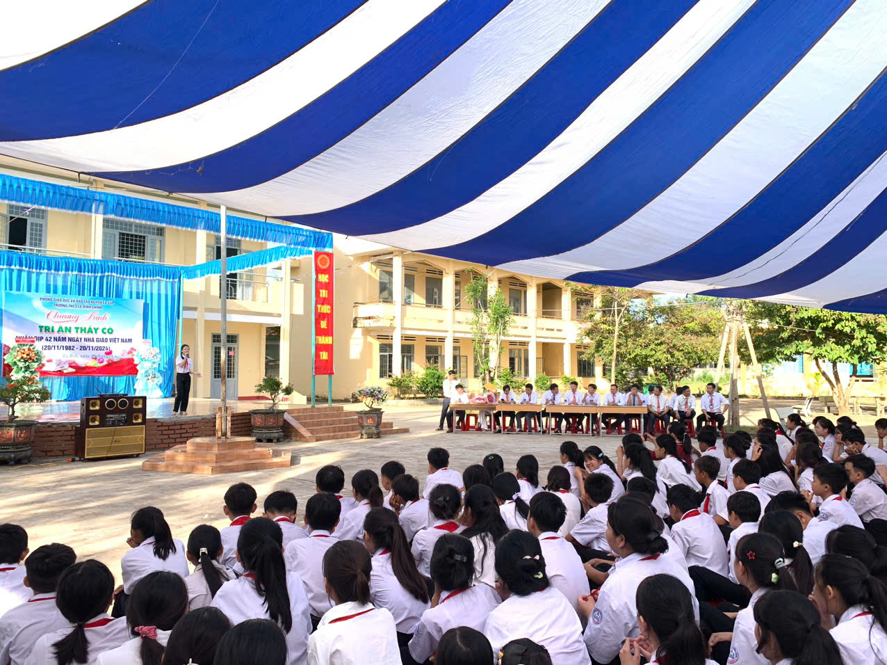 Để bày tỏ tấm lòng kính mến của mình với quý thầy giáo cô giáo, thay lời tri ân của các thế hệ học sinh toàn trường, thay mặt cho hơn 750 học sinh nhà trường, em Hồ Phạm An Nhi – Học sinh lớp 8a5, phát biểu lời tri ân, lời cảm ơn sâu sắc tới các thầy cô, cùng toàn thể cán bộ, nhân viên nhà trường vì những cống hiến cho sự nghiệp trồng người.