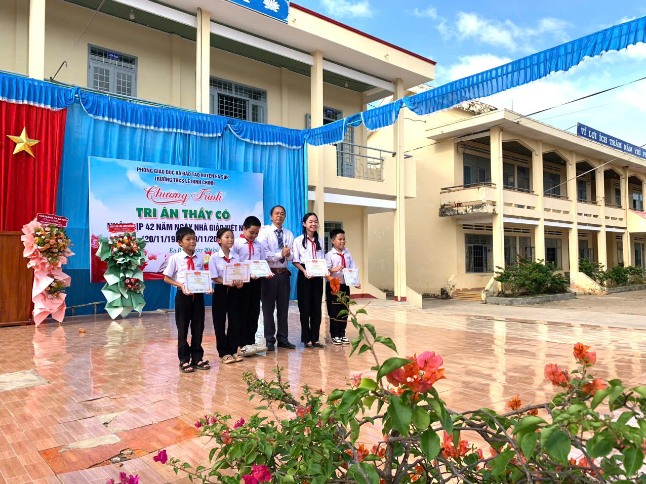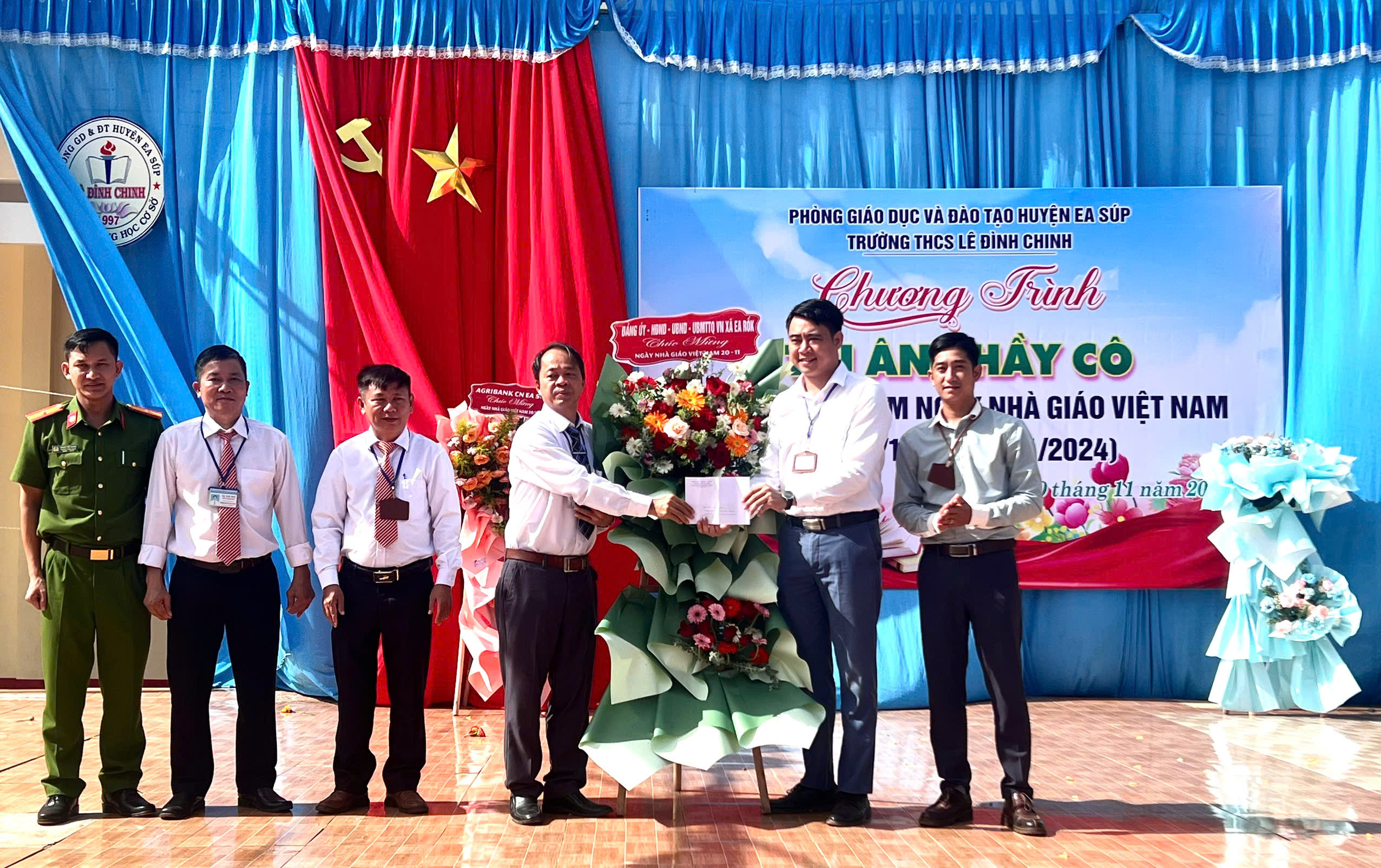 Trong các năm học qua thầy và trò Trường THCS Lê Đình Chinh luôn hoàn thành xuất sắc các nhiệm vụ được giao và thu được những kết quả hết sức tốt đẹp. Có được sự thành công là nhờ sự quan tâm đặc biệt, sự chỉ đạo sát sao của Đảng ủy – Chính quyền xã Ea Rốk. Về dự lễ kỷ niệm, ông Nguyễn Văn Nguyên – Chủ tịch UBND xã Ea Rốk đã phát biểu chúc mừng và cùng với các đồng chí trong đoàn tặng hoa – quà cho tập thể CB-GV-NV nhà trường.