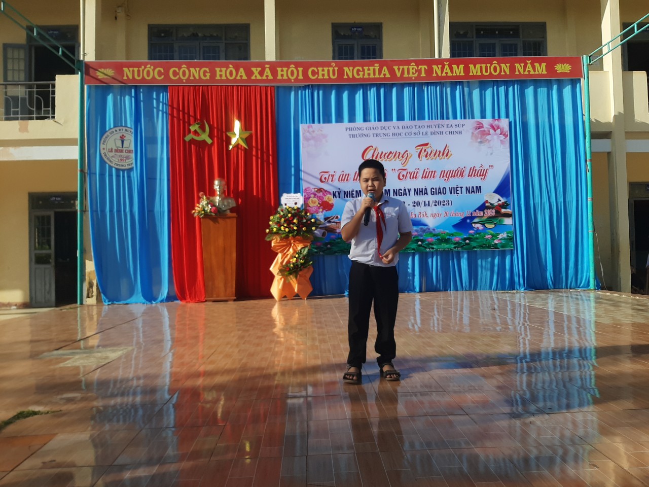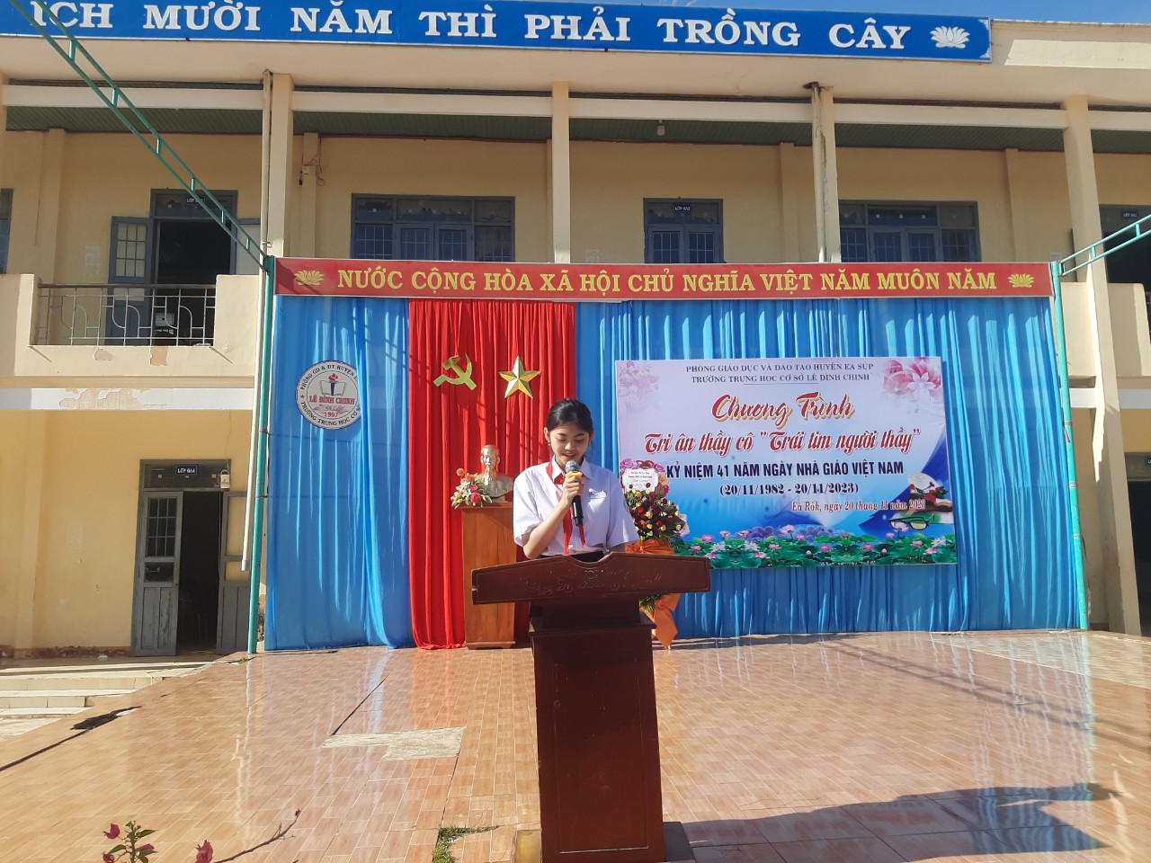 Sáng ngày 20/11/2023, trường THCS Lê Đình Chinh long trọng tổ chức chương trình Tri ân thầy cô “Trái tim người thầy” kỷ niệm 41 năm Ngày Nhà giáo Việt Nam (20/11/1982 – 20/11/2023).