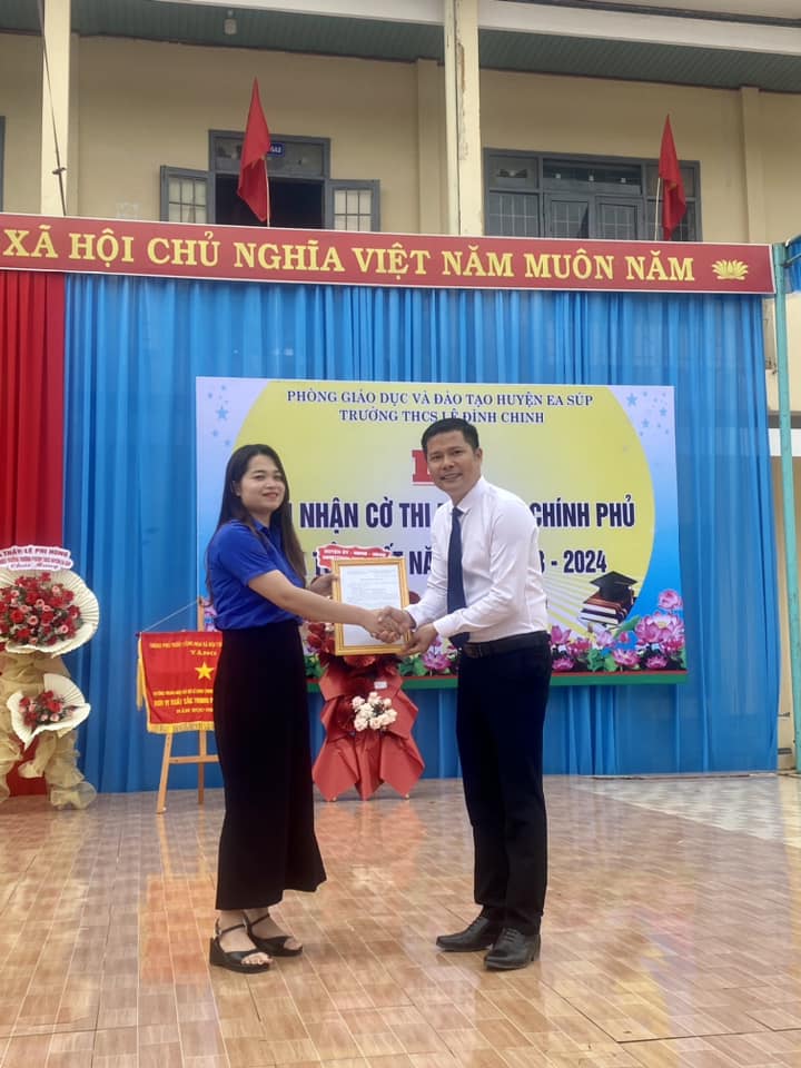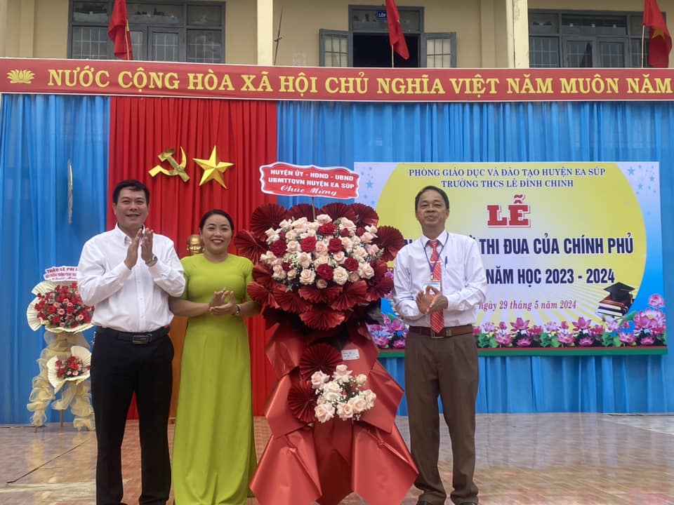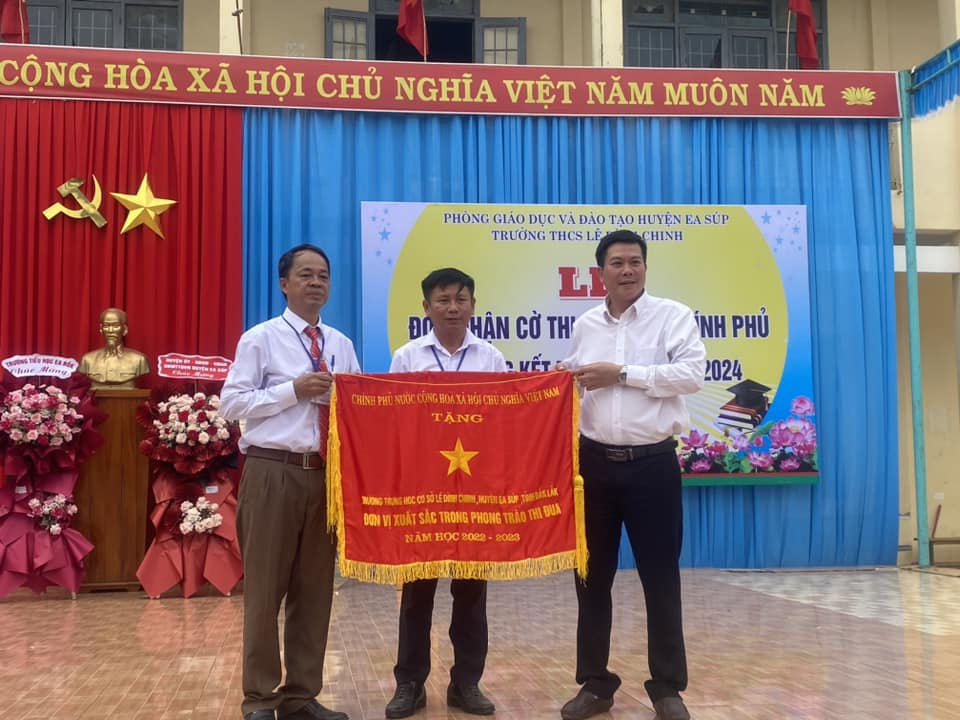 Tại buổi lễ, ông Bùi Tiến Hoạt – Phó trưởng phòng Nội vụ Huyện Ea Súp đã công bố quyết định và trao cờ thi đua của Chính phủ cho trường THCS Lê Đình Chinh.