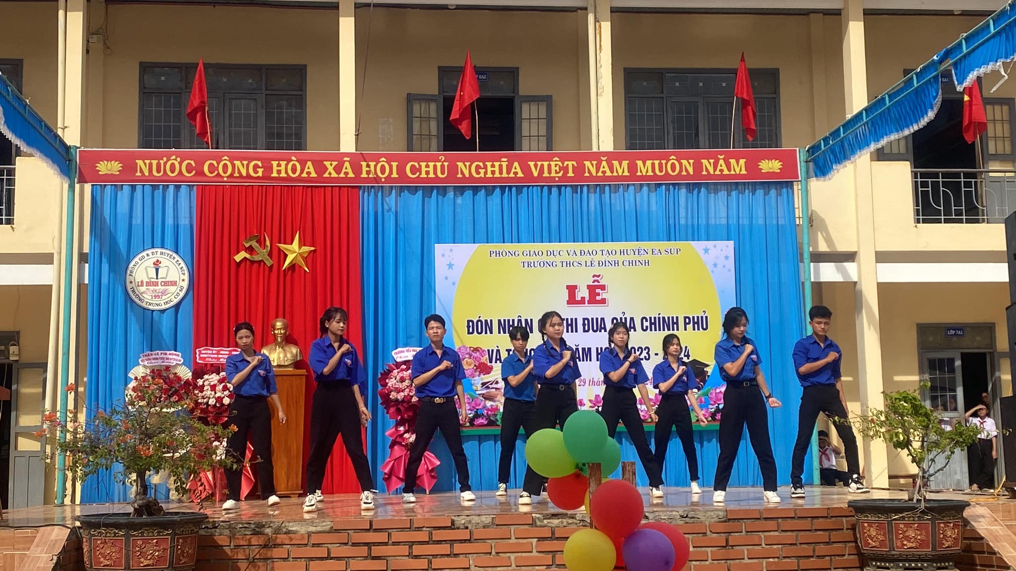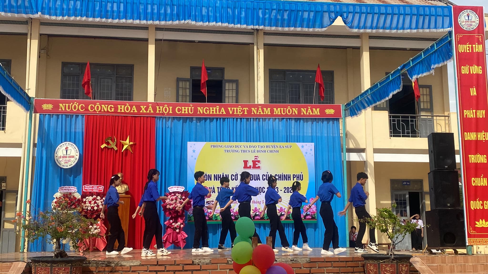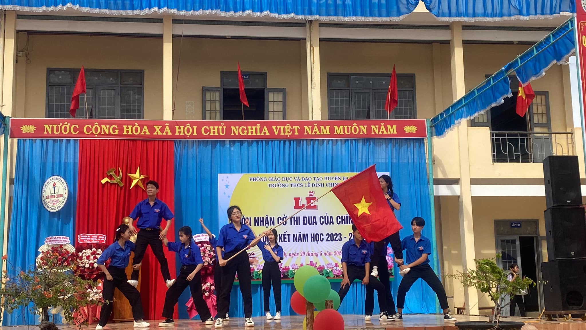 Sáng 29/5/2024, trường THCS Lê Đình Chinh long trọng tổ chức Lễ đón nhận cờ thi đua của Chính phủ năm học 2022-2023 và tổng kết năm học 2023-2024.
