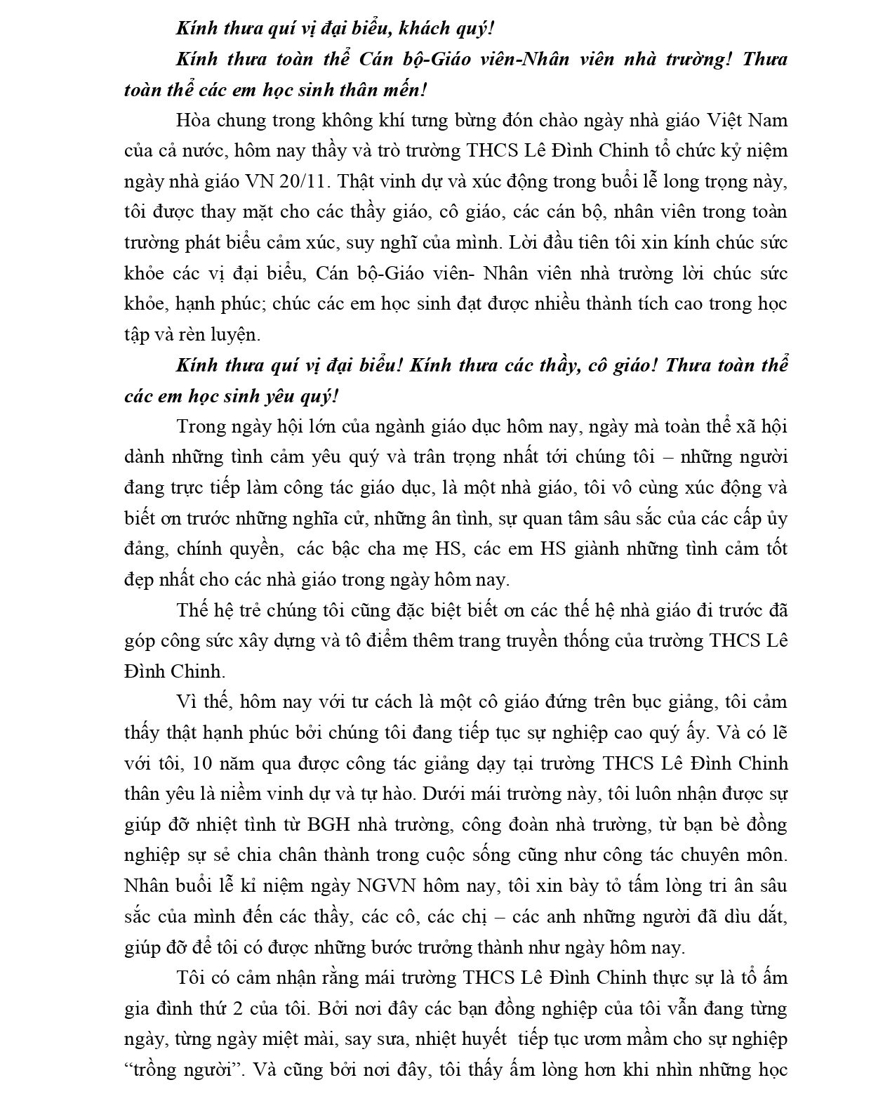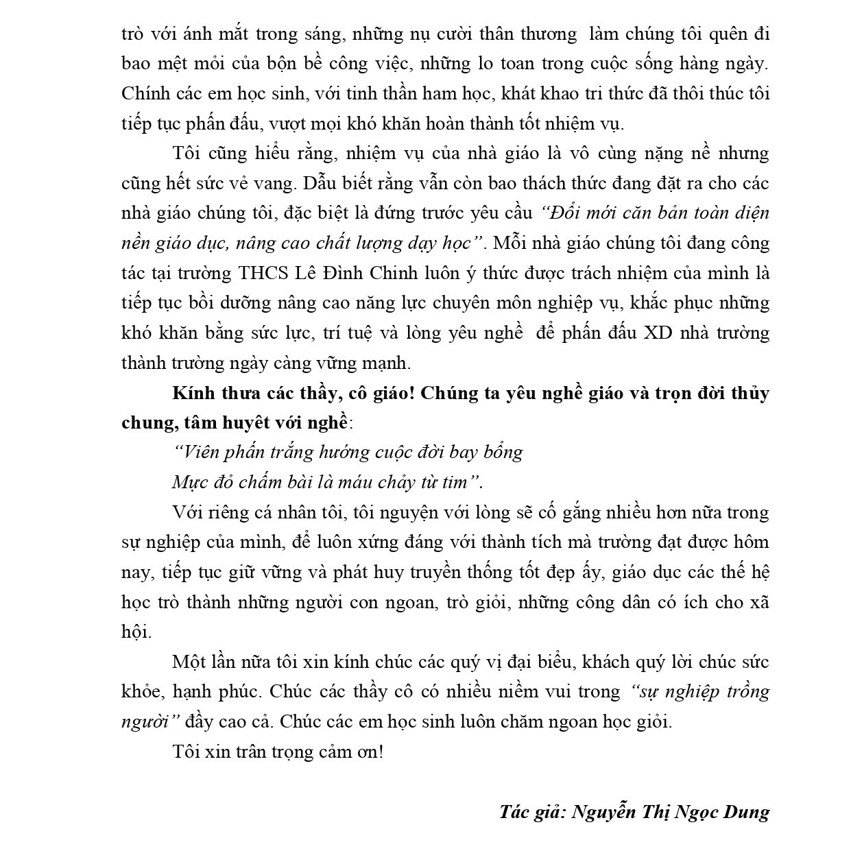 Toàn văn bài phát biểu của cô Nguyễn Thị Ngọc Dung: