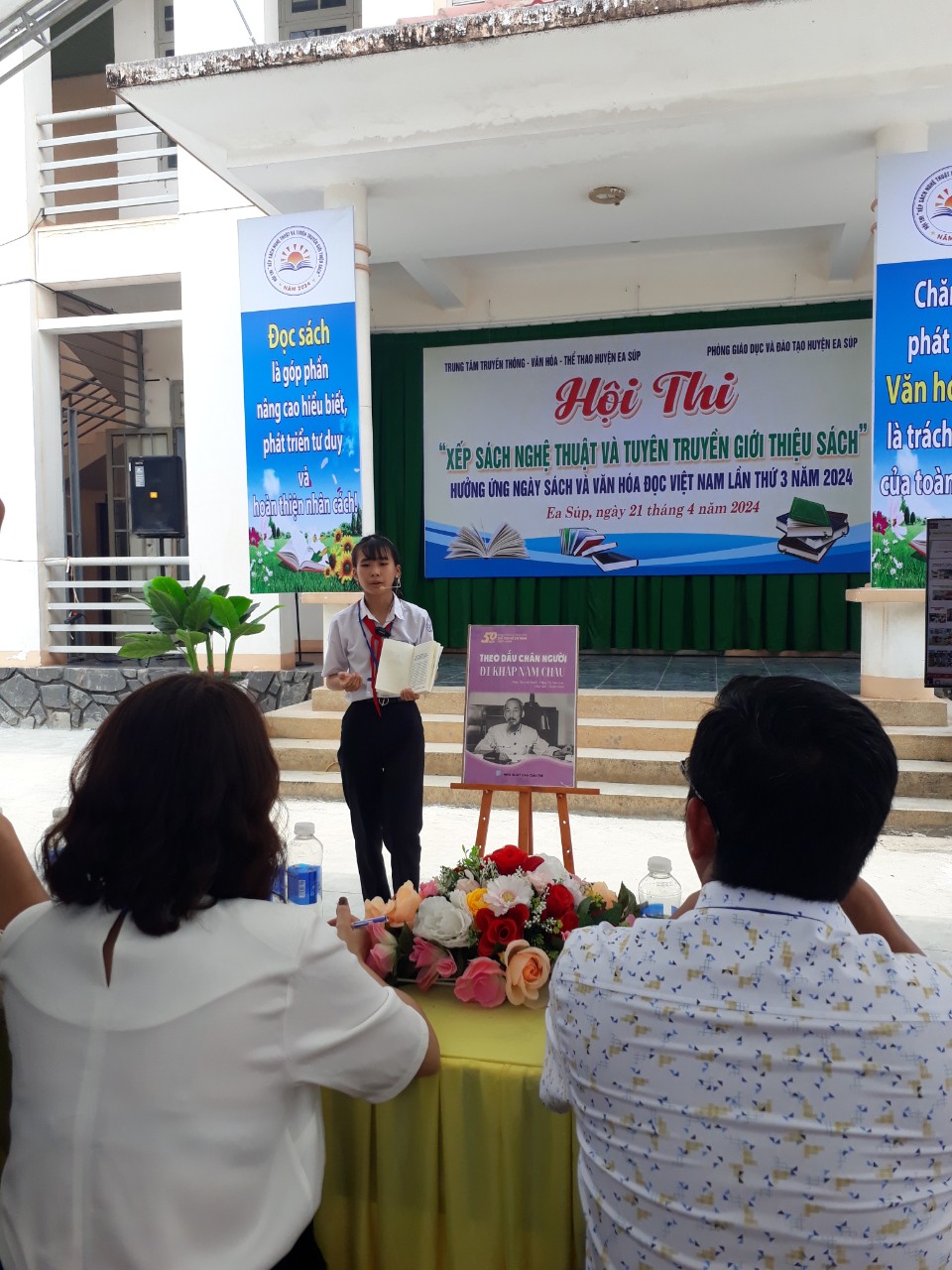 Sáng ngày 21/4/2024, Hưởng ứng Ngày Sách và Văn hóa đọc Việt Nam lần thứ 3 năm 2024, trường THCS Lê Đình Chinh tham gia Hội thi “Xếp sách nghệ thuật và Tuyên truyền giới thiệu sách” do Trung tâm Truyền thông – Văn hóa – Thể thao phối hợp với Phòng GD&ĐT huyện Ea Súp tổ chức theo Công văn số 02/KH-TTVHTT-GD&ĐT ngày 29/3/2024.
